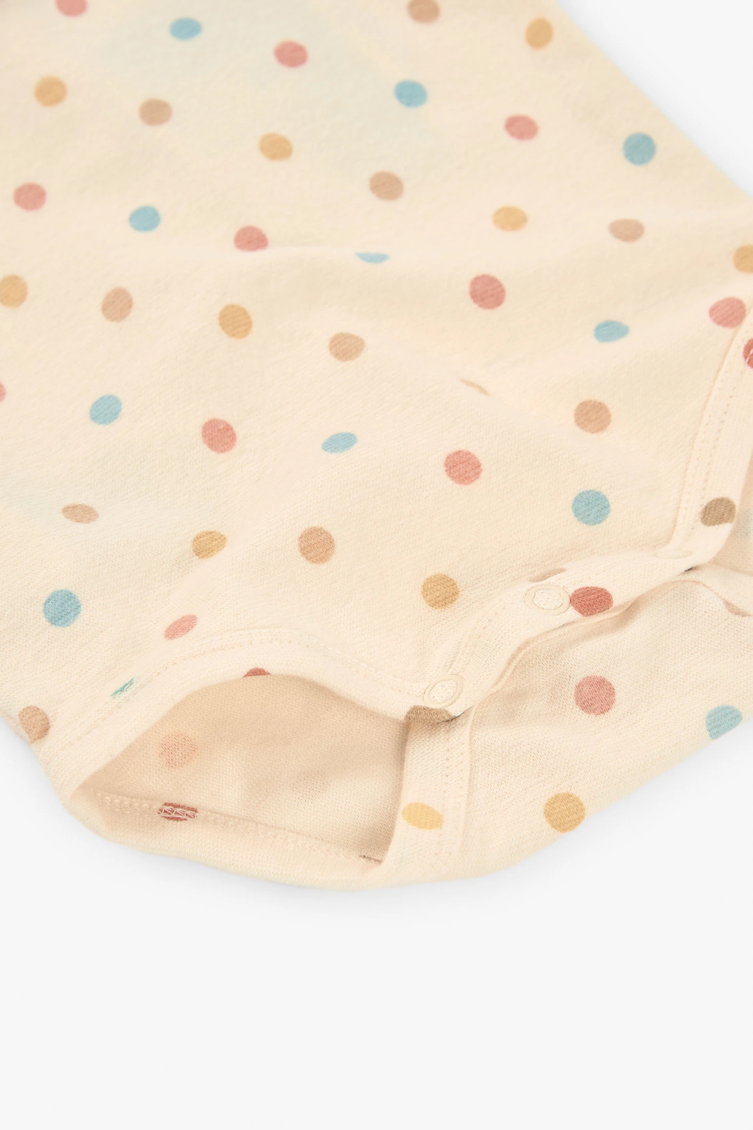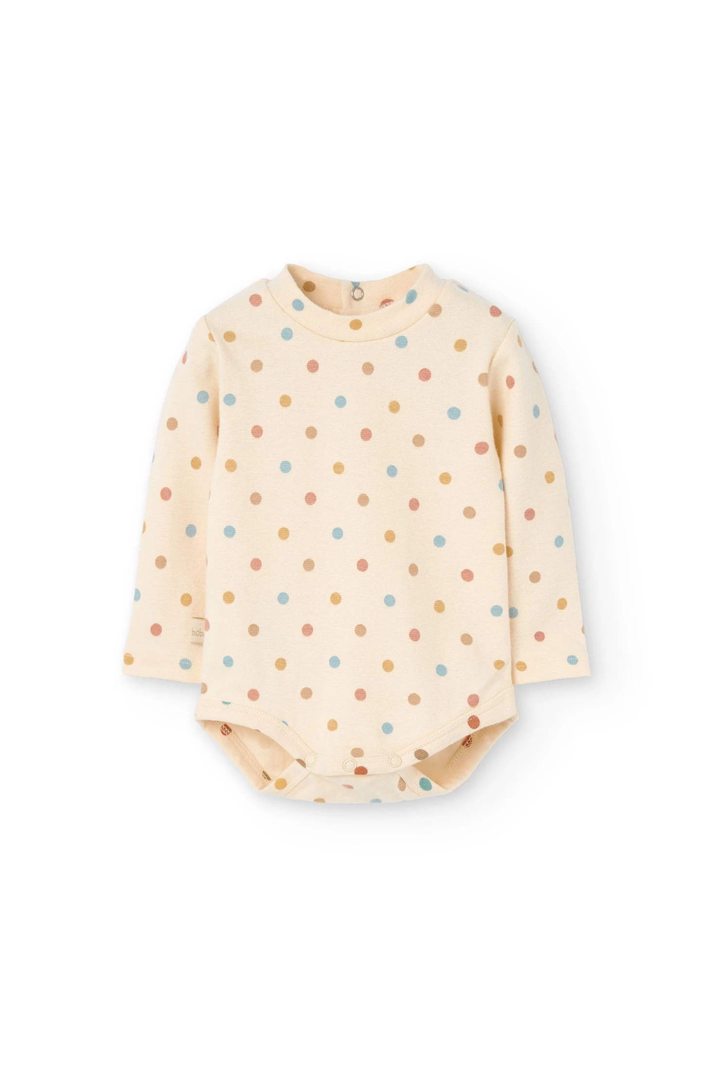 Body à pois pour bébé, un vêtement essentiel pour toutes les saisons, offre confort et style aux tout-petits. Confectionné en doux coton côtelé, son design à pois le rend adorable et parfaitement assorti avec des pantalons ou des jupes pour un look complet. Disponible en plusieurs tailles, ce body dispose de boutons-pression pour faciliter le changement de couches. Idéal à porter tant comme couche intérieure en hiver que comme vêtement principal en été, il assure un confort maximal et une liberté de mouvement pour votre bébé.