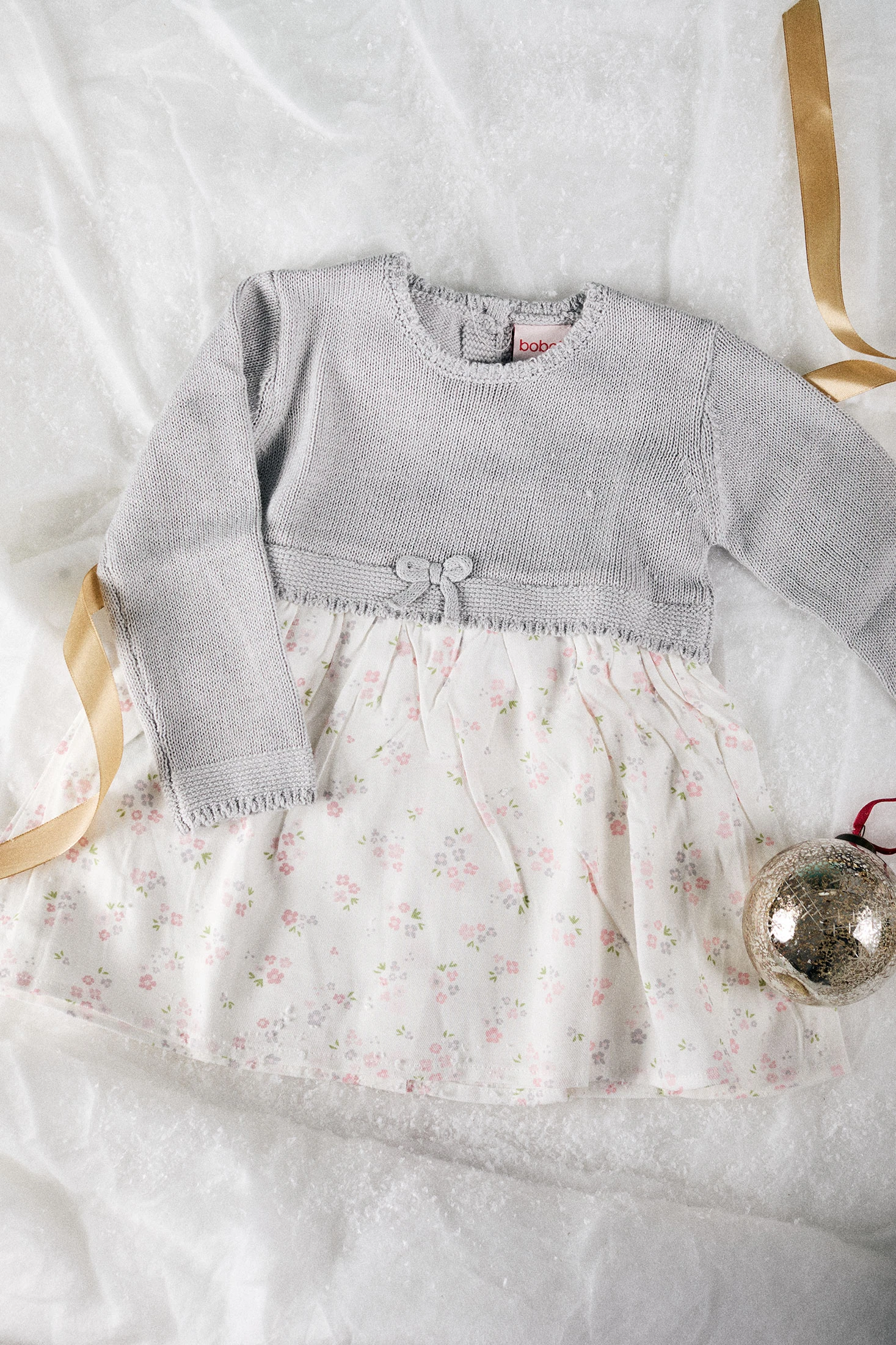 Robe en maille pour bébé qui présente une douce couleur grise ornée d'un délicat motif floral. Confectionnée en tissu tricoté, elle offre chaleur et confort, idéale pour la mi-saison. Les manches longues assurent une chaleur adéquate, tandis que le joli nœud à l'avant ajoute une touche d'élégance. Disponible en tailles de 1 mois à 2 ans, c'est une option polyvalente pour des événements spéciaux ou des sorties quotidiennes. Associez cette robe avec des collants ou des leggings pour compléter un look charmant pour votre bébé.