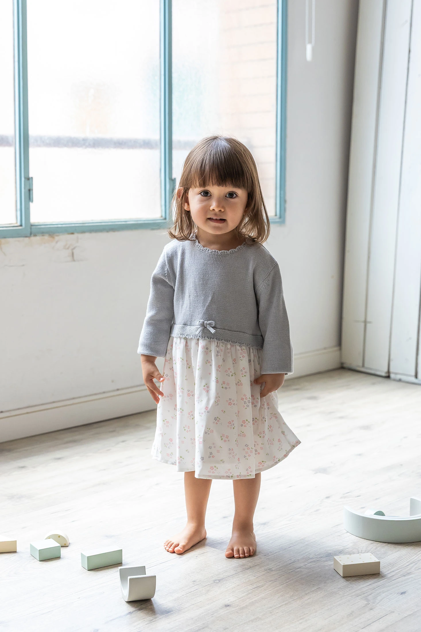 Robe bébé fleurs gris