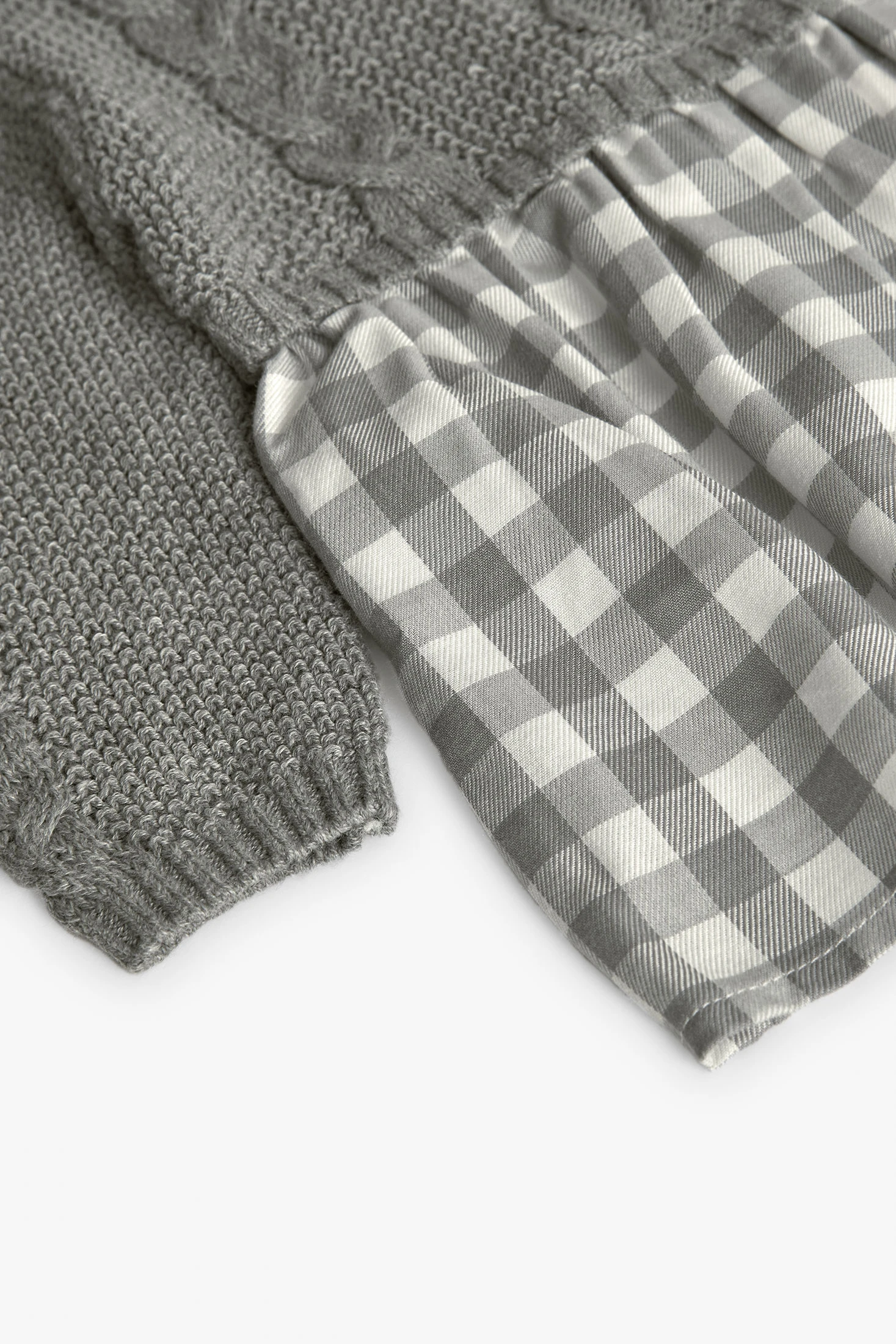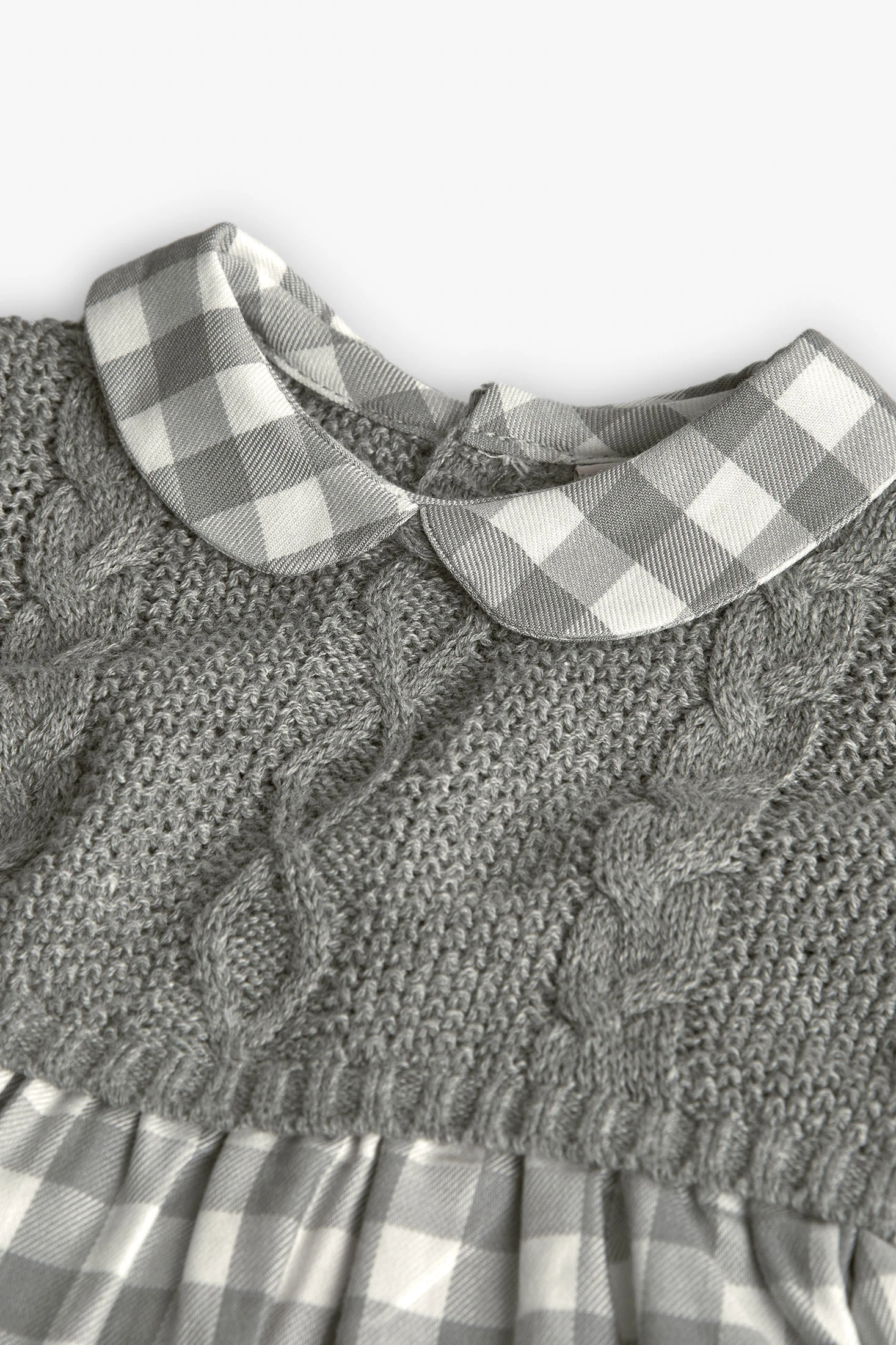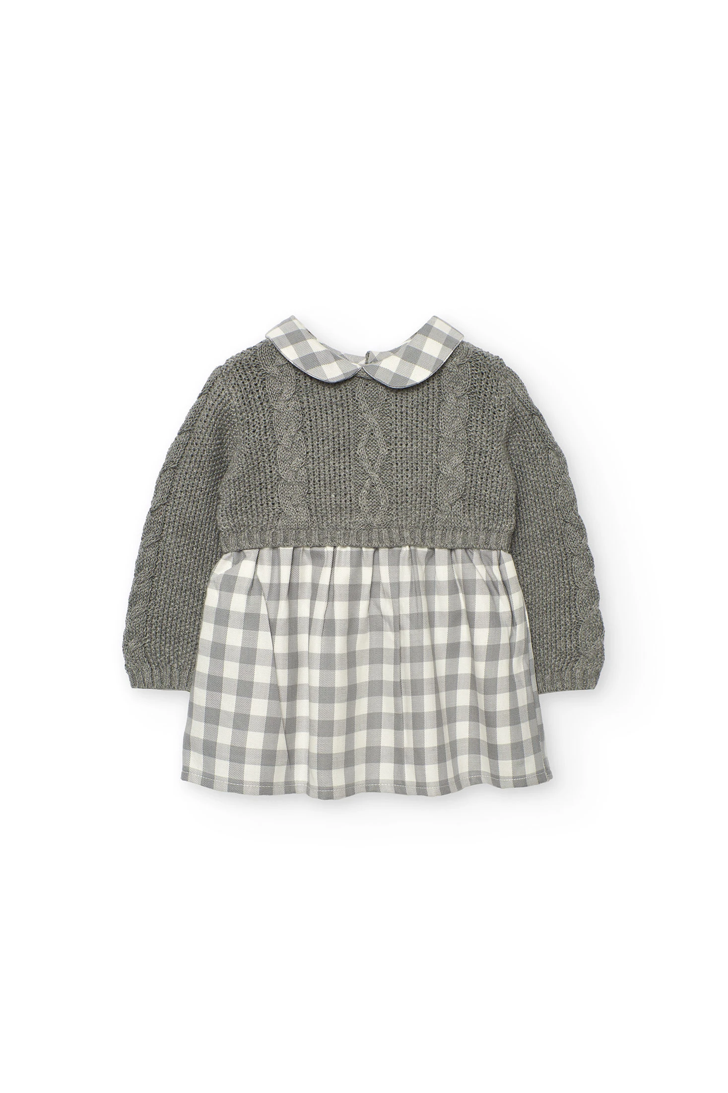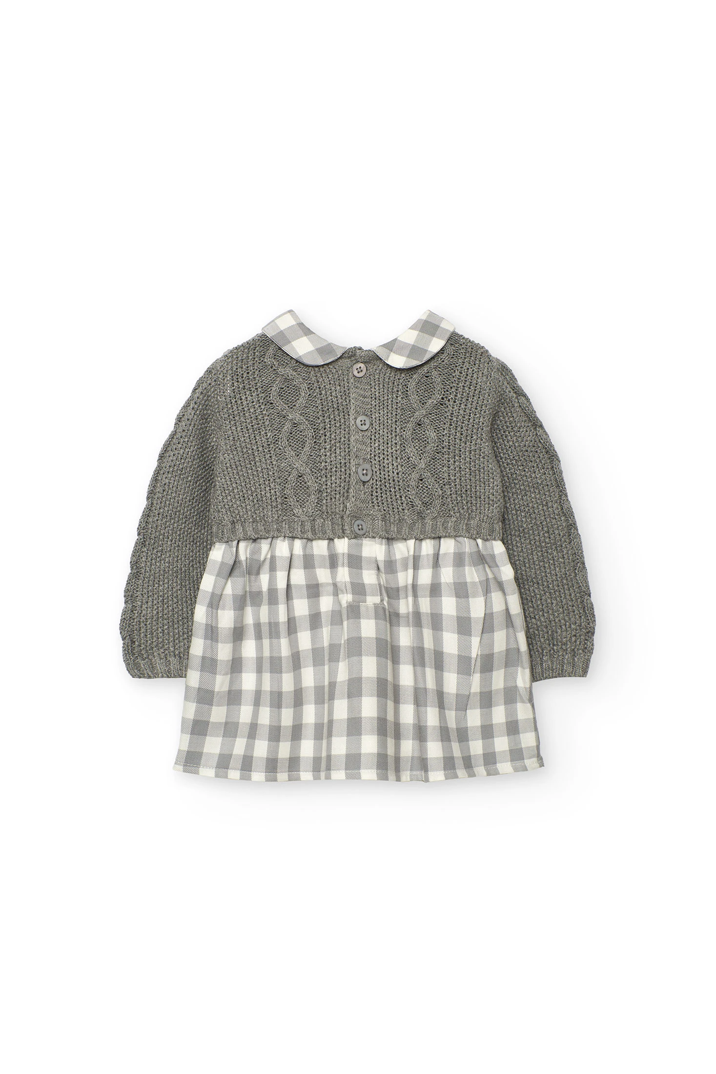 Robe pour bébé en gris, avec un motif à carreaux qui apporte un style classique et accueillant. Parfaite pour les saisons d'automne et d'hiver, les manches longues assurent chaleur et une touche élégante. Confectionnée dans un doux tissu en maille qui maximise le confort, elle est disponible en tailles allant de 1 mois à 2 ans. Idéale tant pour des événements spéciaux que pour un usage quotidien, la robe combine fonctionnalité et style délicat, devenant ainsi une pièce essentielle pour la garde-robe de votre bébé.