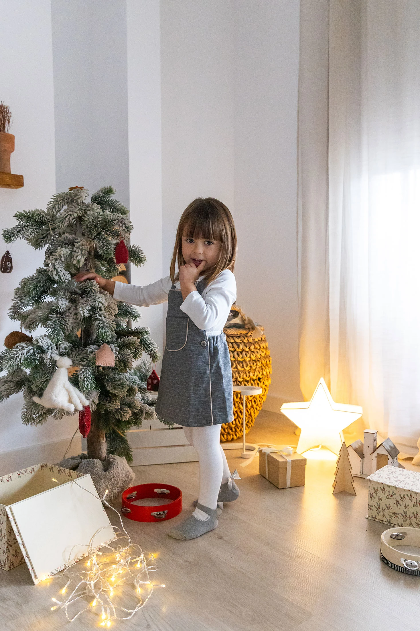 Ensemble en maille de couleur gris chiné, parfait pour les saisons d'automne et d'hiver. Comprend un confortable pull et un pantalon, tous deux confectionnés dans un tissu doux qui procure de la chaleur. Disponible en tailles allant de 1 mois à 2 ans, il offre un ajustement confortable et permet à votre bébé de rester au chaud durant les journées froides. Son design élégant, qui se distingue par un style doux et sophistiqué, en fait une option charmante pour les occasions spéciales. Associez-le avec des accessoires dans des tons neutres pour un look complet et harmonieux.