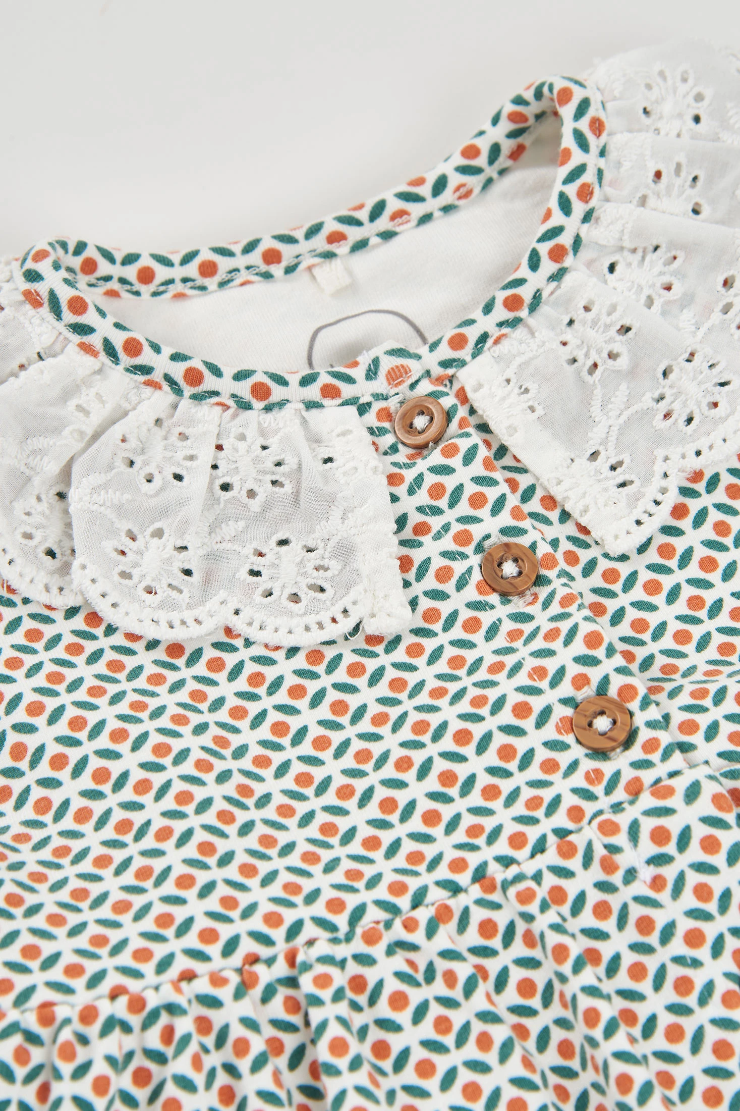 Robe en maille imprimée pour bébé fille avec culotte, parfaite pour les premiers mois. Disponible en tailles de 1 mois à 24 mois. Le design présente un imprimé géométrique dans des tons doux, et un charmant col brodé qui lui donne de l'élégance. Sa fermeture à boutons facilite le changement de vêtements, pratique pour le quotidien. Parfait pour assortir avec des vestes légères lors des journées fraîches.