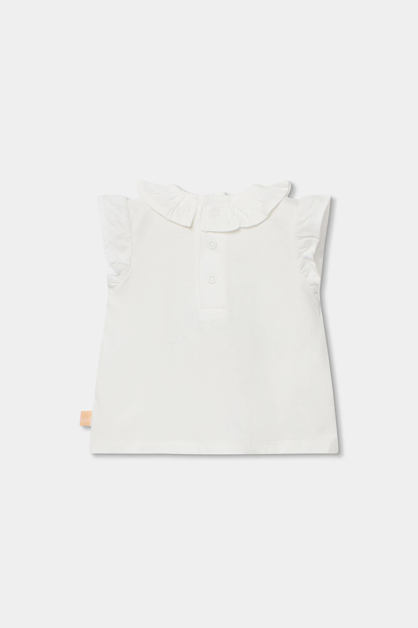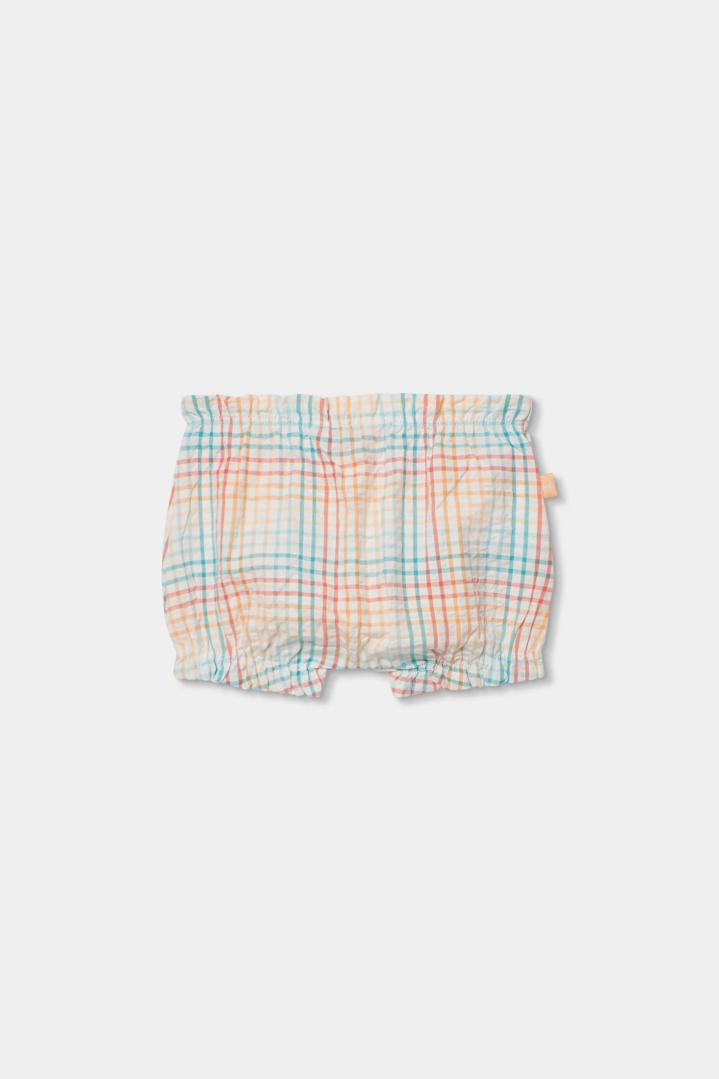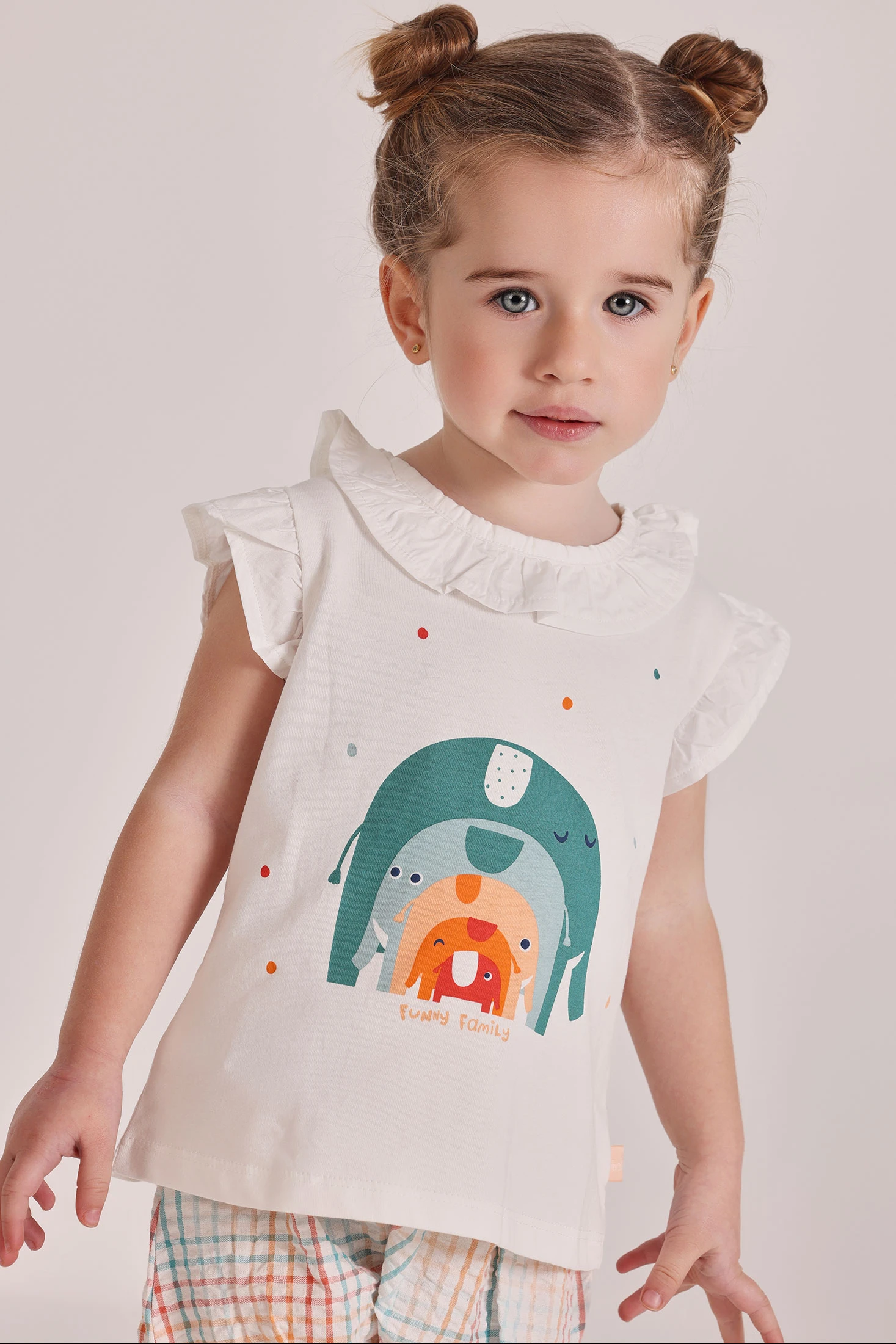Ensemble pour bébé en tricot combiné avec du coton blanc, idéal pour les tout-petits. Son design présente un doux imprimé de charmants animaux sur la partie supérieure et un col volanté attrayant, ajoutant une touche charmante. Les shorts à carreaux dans des tons doux complètent parfaitement l'ensemble. Disponible en tailles allant de 1 mois à 24 mois, il garantit confort et style pendant la croissance du bébé. Parfait pour garder votre petit au frais et à la mode en toute occasion décontractée.