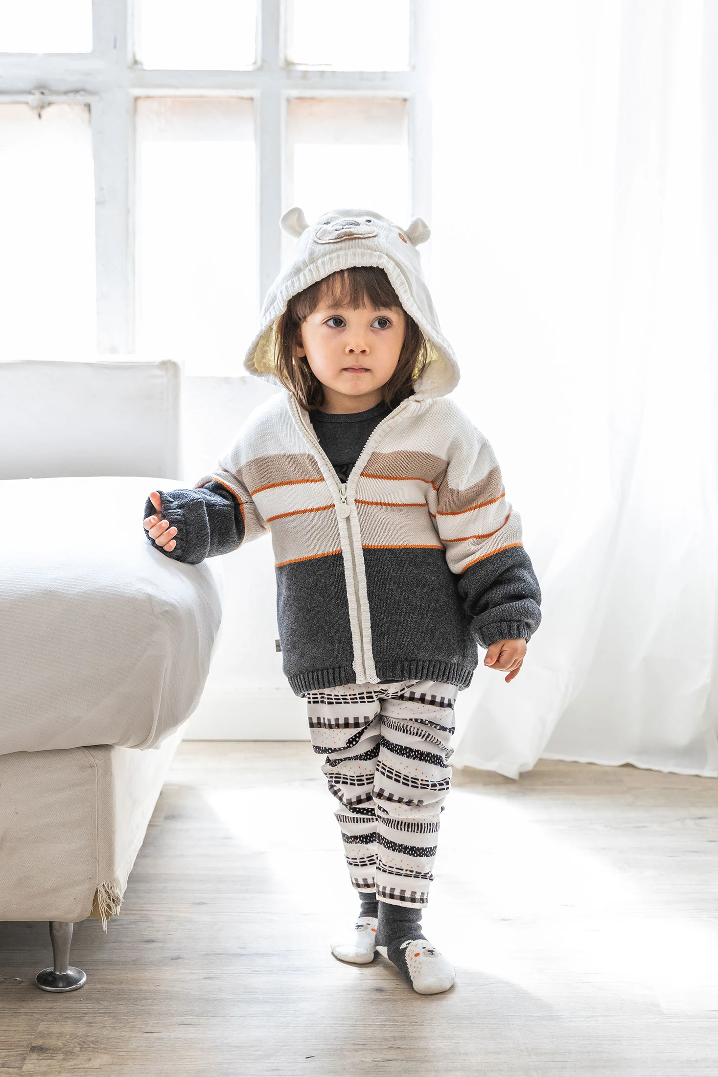 Gilet en maille pour bébé à rayures colorées, idéal pour garder les petits au chaud en automne et en hiver. Comprend une capuche confortable et une fermeture éclair pour offrir une protection supplémentaire contre le froid. Confectionné dans un tissu doux et agréable au toucher, il assure un confort maximal. Disponible en tailles de 1 mois à 2 ans, s'adaptant à la croissance de votre bébé. Son style polyvalent se combine facilement avec d'autres vêtements pour enfants pour obtenir un look adorable en toute occasion.