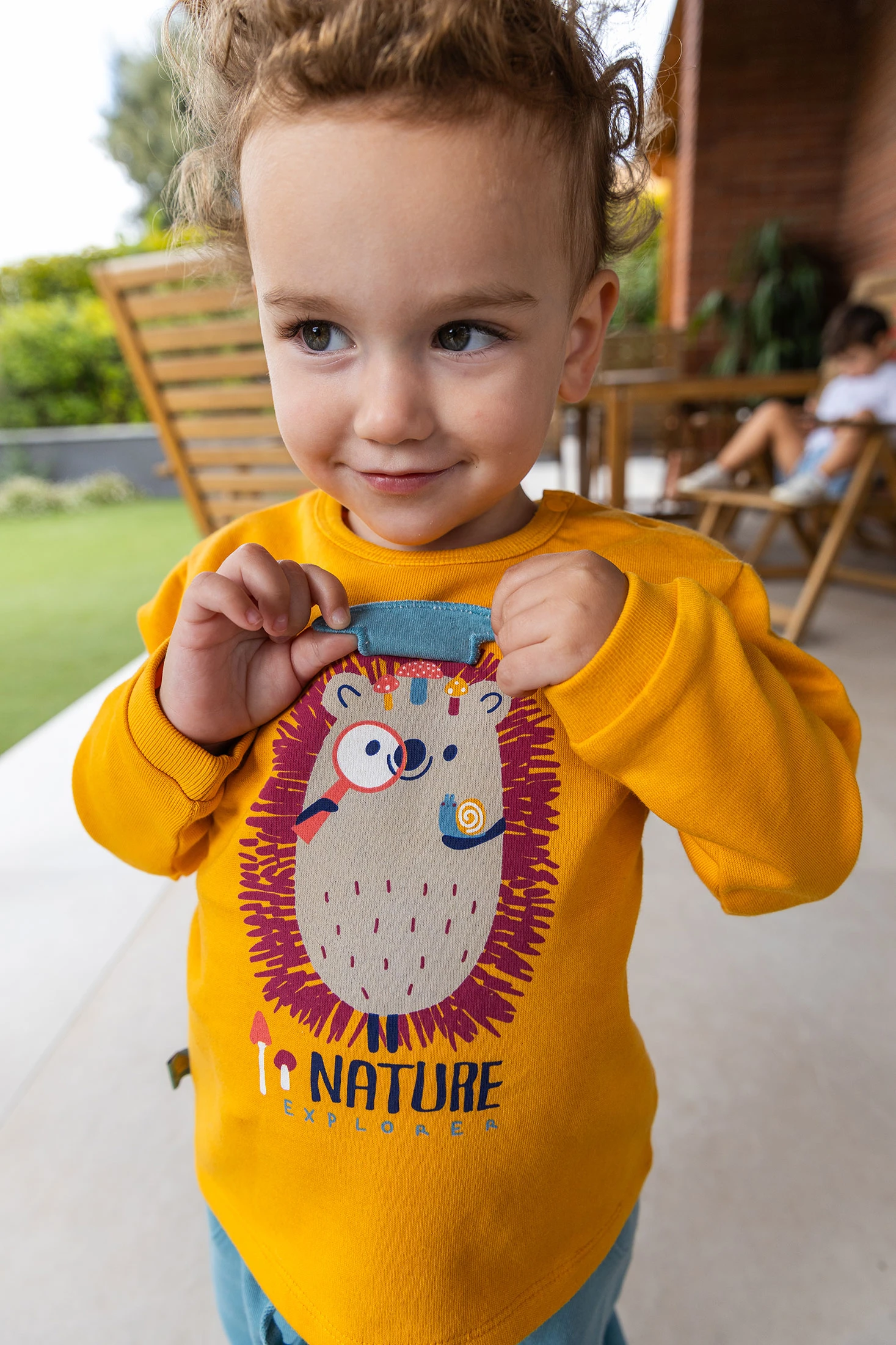 Sweat en molleton pour bébé de couleur jaune avec imprimé d'animaux, idéal pour égayer toute tenue enfantine. Fabriqué en un tissu de molleton doux, il dispose d'un col rond confortable et de manches longues, offrant de la chaleur lors des journées fraîches. Ce design polyvalent est parfait pour s'associer à des pantalons ou des leggings, adapté aussi bien pour un usage quotidien que pour des occasions spéciales. Disponible en tailles de 1 mois à 24 mois, il assure un ajustement confortable qui accompagne la croissance du bébé.