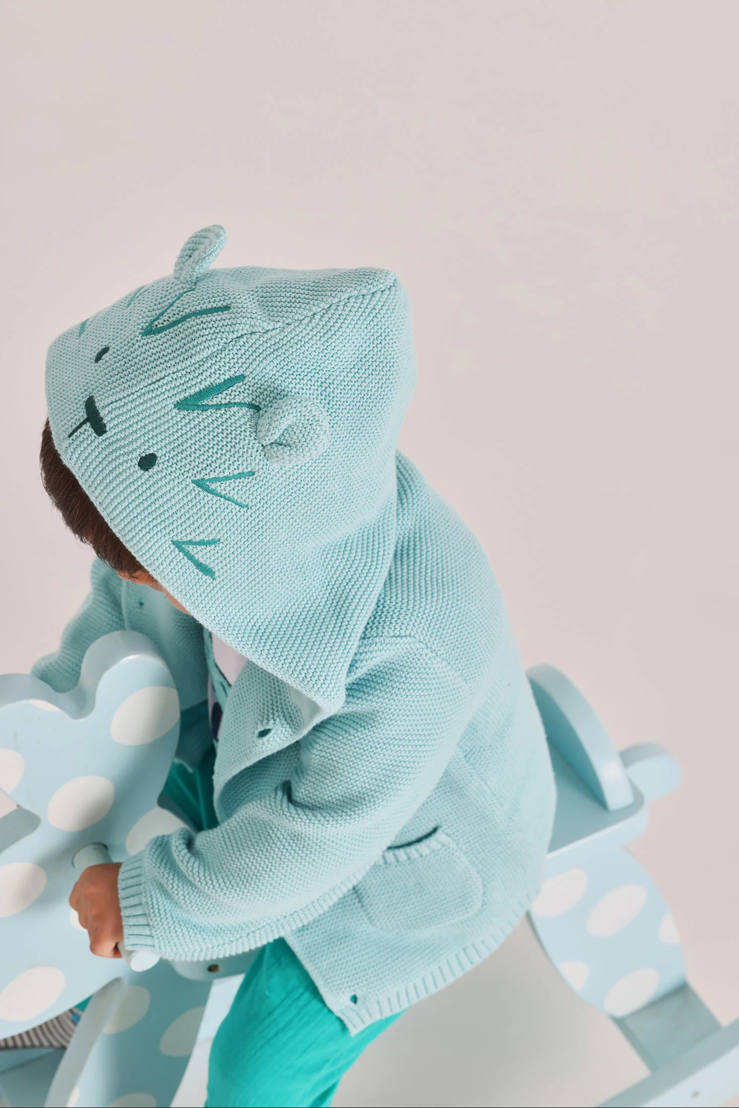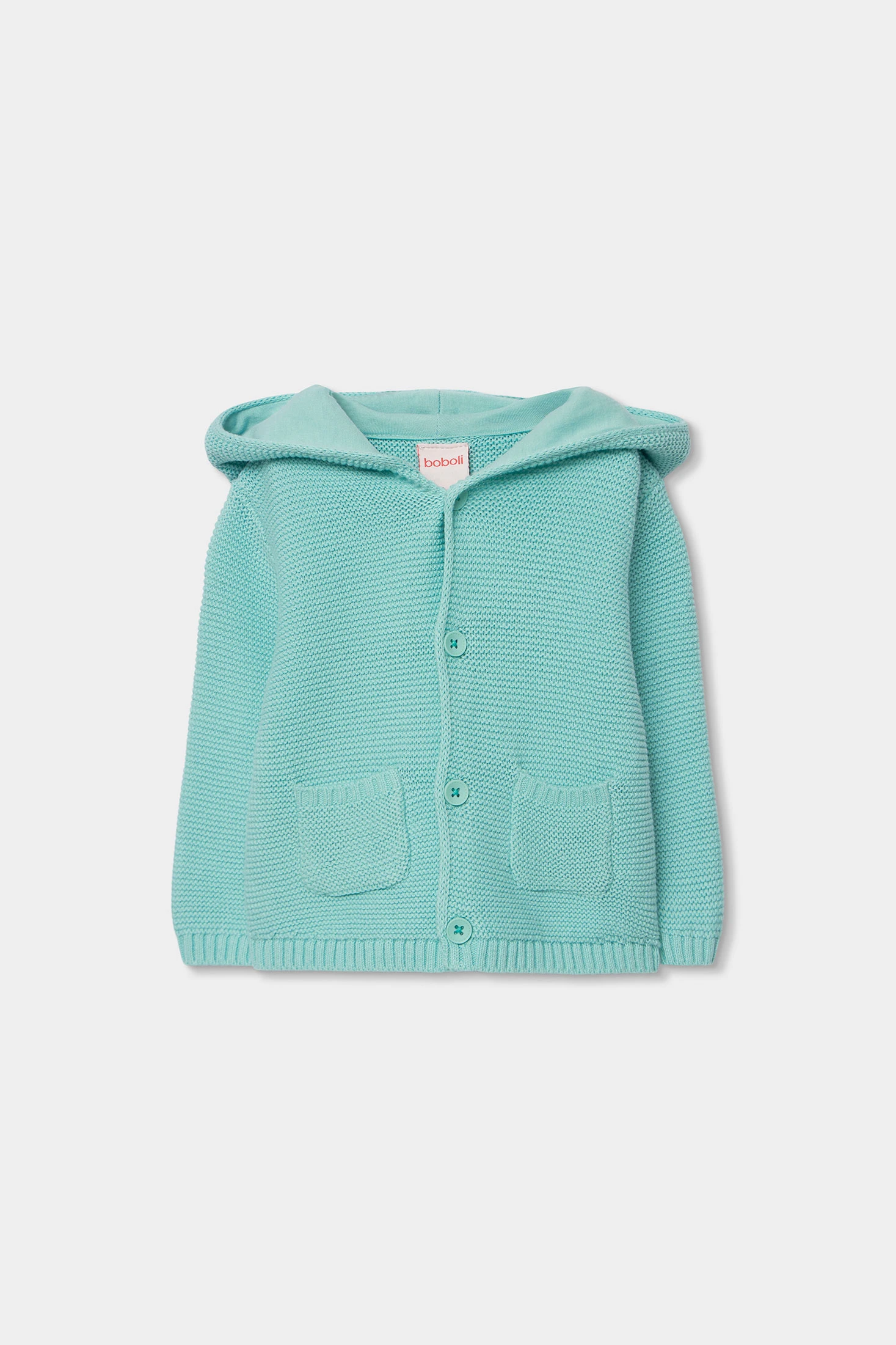 Veste en maille verte pour enfant, parfaite pour garder les petits confortables et au chaud lors des journées plus fraîches d'été. Fabriquée dans un tissu en maille doux, elle est idéale pour les nouveau-nés jusqu'à 24 mois. Son design présente une capuche pratique et des boutons à l'avant pour une fermeture simple. Elle inclut deux poches frontales qui ajoutent fonctionnalité et style. Ce design polyvalent, dans une vibrante teinte vert menthe, se combine facilement avec différentes tenues pour toute occasion informelle, apportant chaleur et une touche moderne.