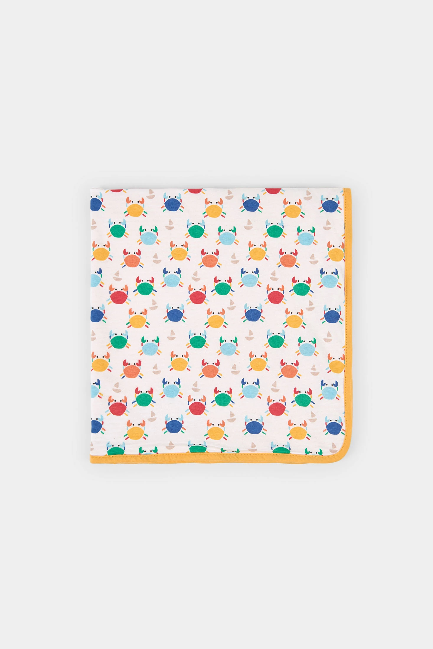 Couverture en coton pour enfant, idéale pour les nouveau-nés. Son design présente un imprimé amusant de rayures jaunes et de petits crabes colorés au verso. Le matériau est doux et respirant, parfait pour garder votre bébé confortable et au chaud. Légère, facile à transporter, elle peut être utilisée aussi bien à la maison que dans la poussette. Un accessoire pratique et au style joyeux pour toute occasion.