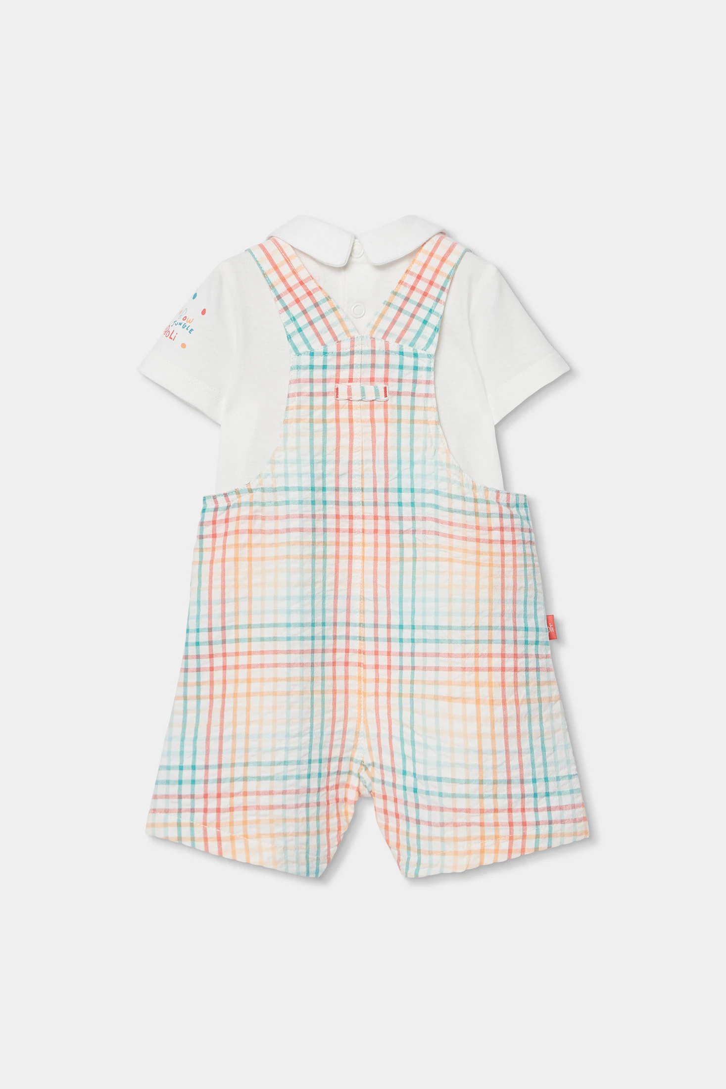 Ensemble salopette pour bébé confectionné en coton doux, idéal pour la peau délicate des tout-petits. Il présente un motif à carreaux dans des tons pastel et arbore de jolis dessins d'animaux sur le devant. Parfait pour les bébés de 1 mois à 24 mois. Son style fonctionnel inclut des bretelles réglables avec boutons et une poche avant décorative sur la salopette et un t-shirt blanc. Se combine facilement pour un look charmant en toute occasion.