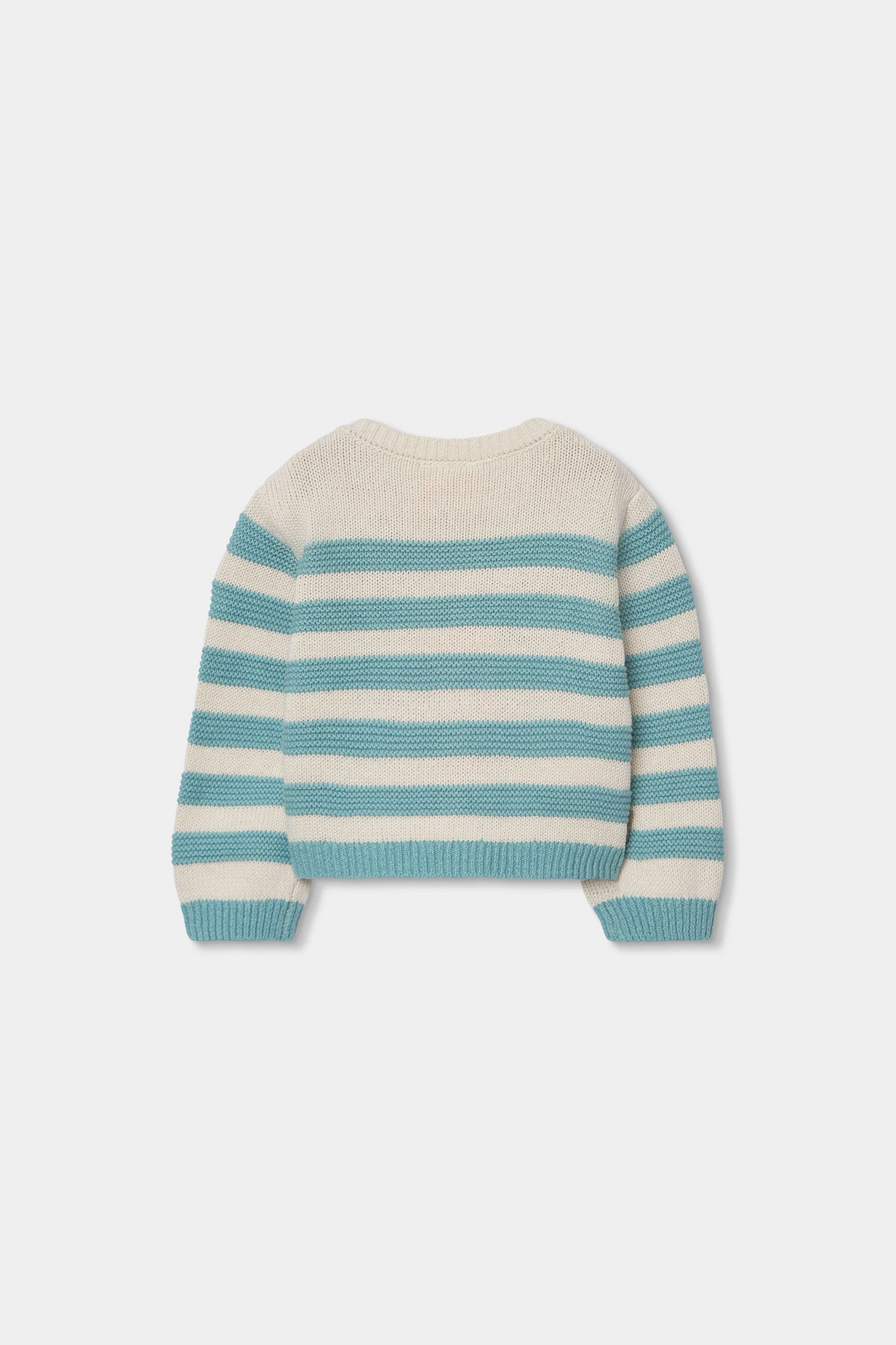 Veste pour bébé confectionnée en tricot, idéale pour garder votre petit au chaud. Son design présente un motif à rayures combinant vert et crème, ajoutant une touche joyeuse et moderne. Destinée aux âges de 1 mois jusqu'à 2 ans. Le matériau doux assure confort et chaleur, tandis que sa fermeture à boutons facilite son utilisation. Parfaite pour être associée avec des pantalons ou des jupes, devenant un vêtement polyvalent pour toutes les occasions.