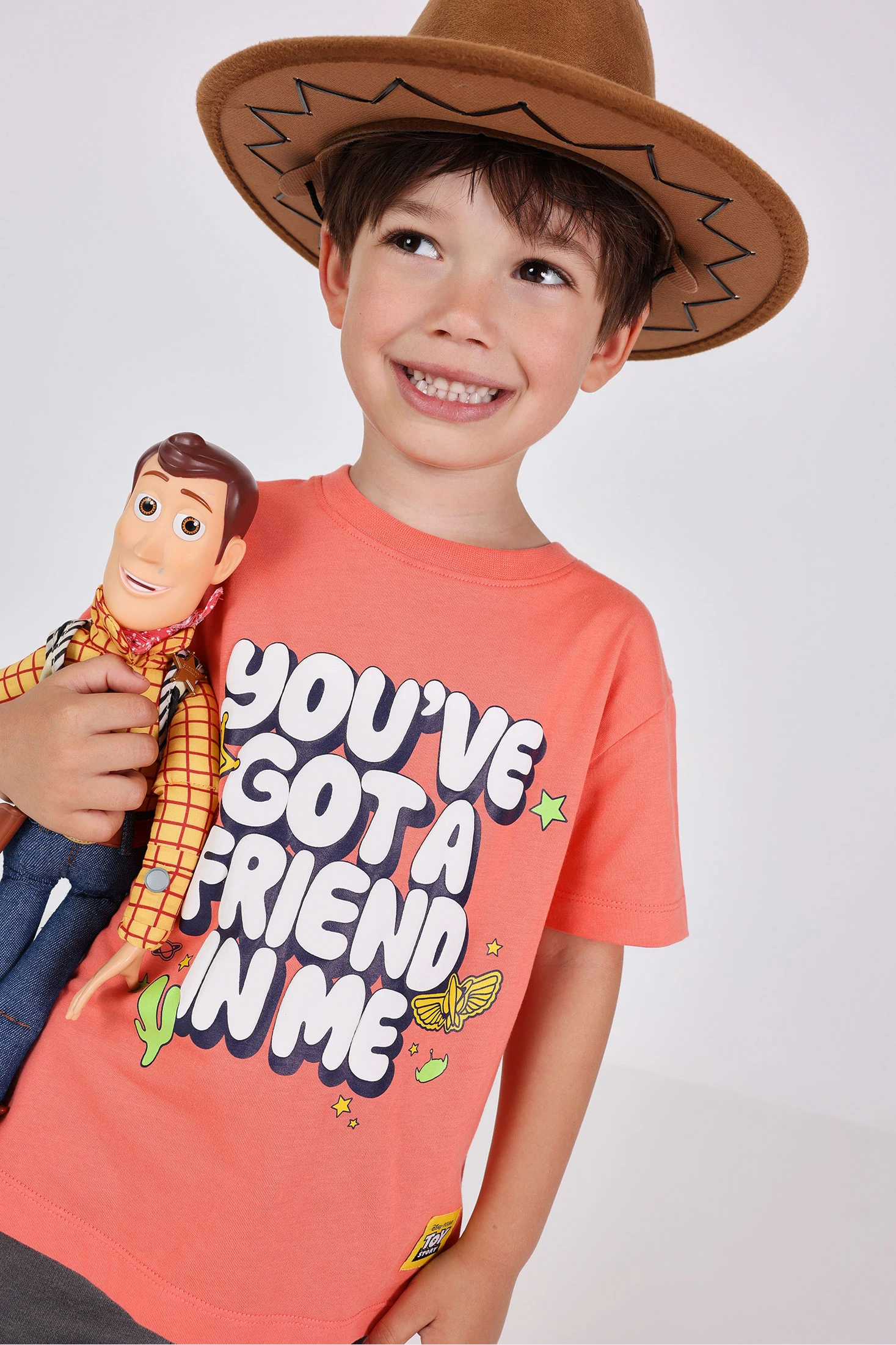 Ce T-shirt à manches courtes, de couleur rouge est parfait pour les petits aventuriers. Fabriqué en coton doux, il est garanti confortable pour toutes les activités. Idéal pour être associé à un short ou à un jean, c'est un vêtement cool et polyvalent pour les journées actives. Disponible dans les tailles de 12 mois à 10 ans. Un T-shirt qui allie le plaisir, la couleur et la magie d'une grande histoire d'amitié.
