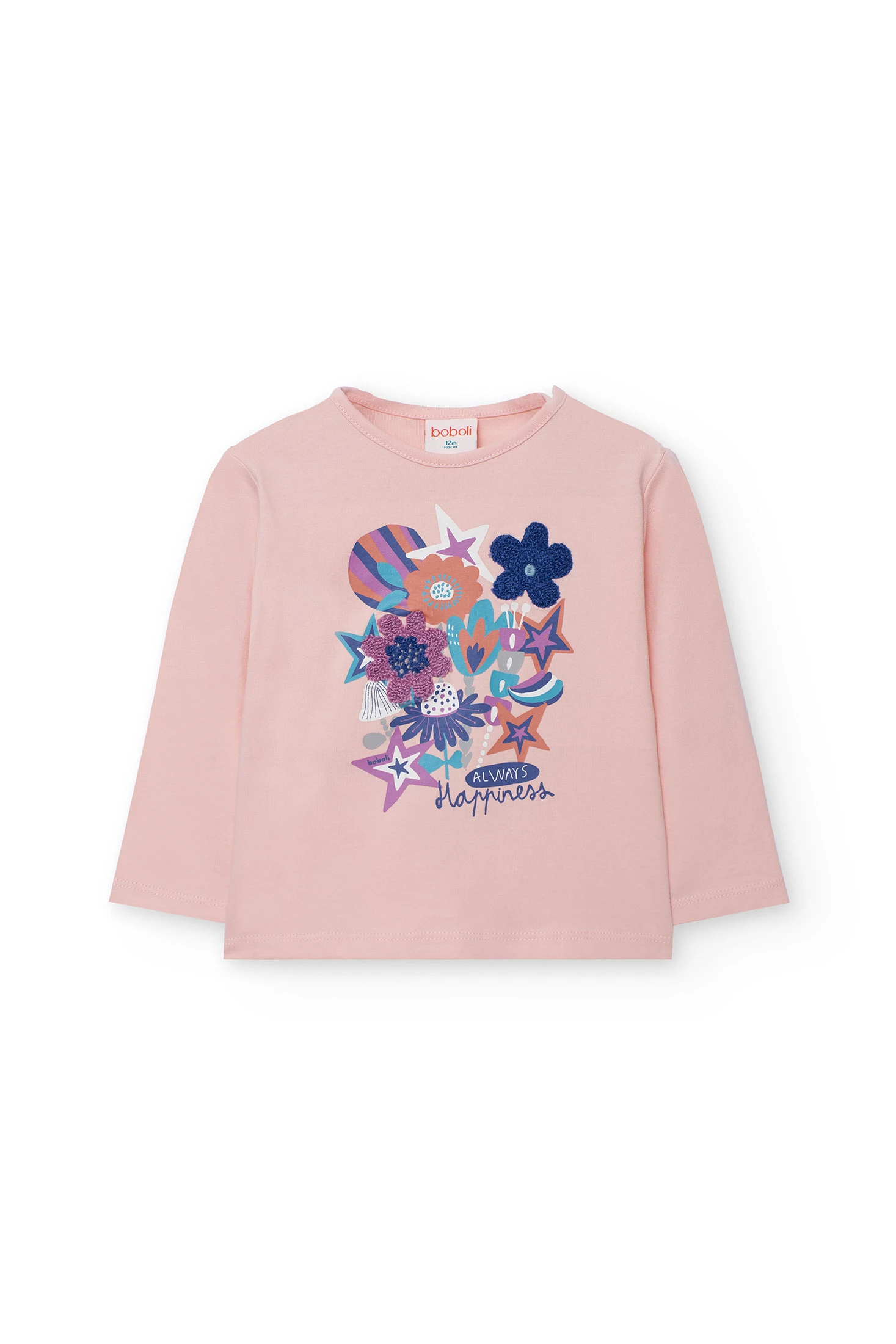 T-shirt en maille pour fille en rose avec un charmant imprimé floral, conçue pour ajouter une touche douce à la garde-robe enfantine. Idéale pour la saison automne-hiver, son tissu offre chaleur et flexibilité. Col rond et manches longues offrent un confort supplémentaire lors des journées plus fraîches. Disponible en tailles de 12 mois à 10 ans, cette t-shirt est facile à assortir avec des pantalons ou des jupes, créant des looks polyvalents et joyeux.