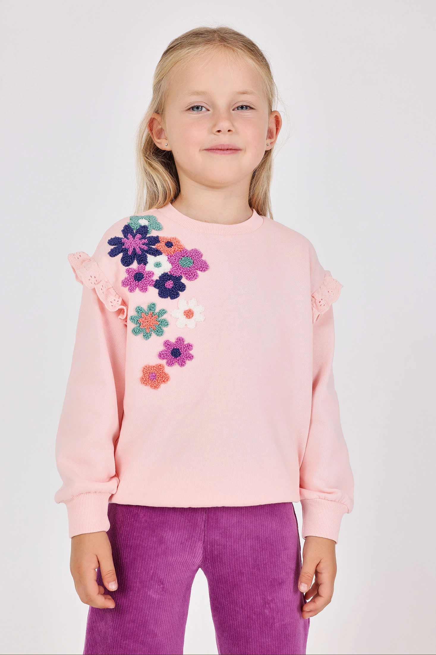 Sweatshirt fille en molleton rose fleurs