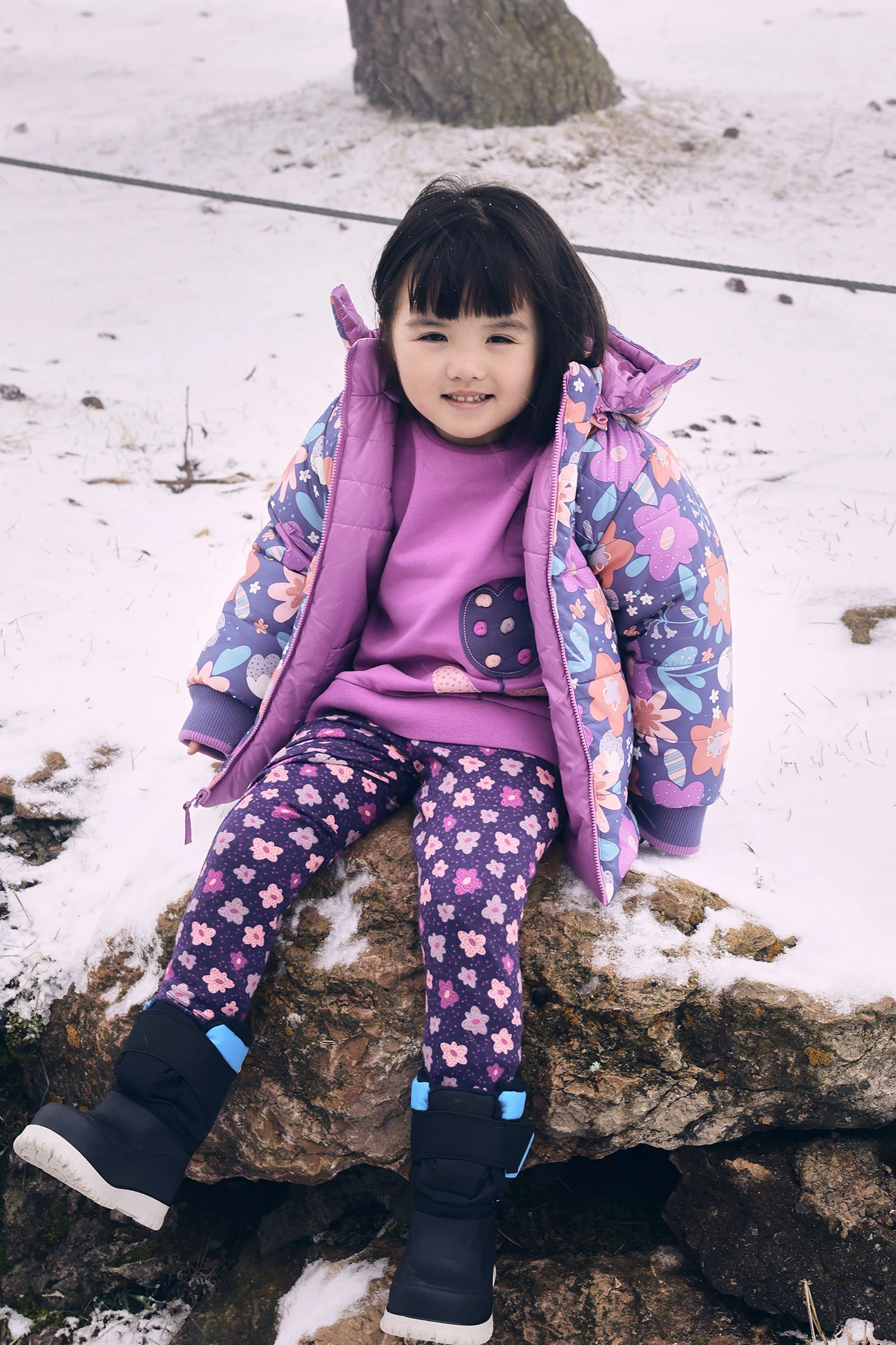 Leggings en tricot lilas avec fleurs