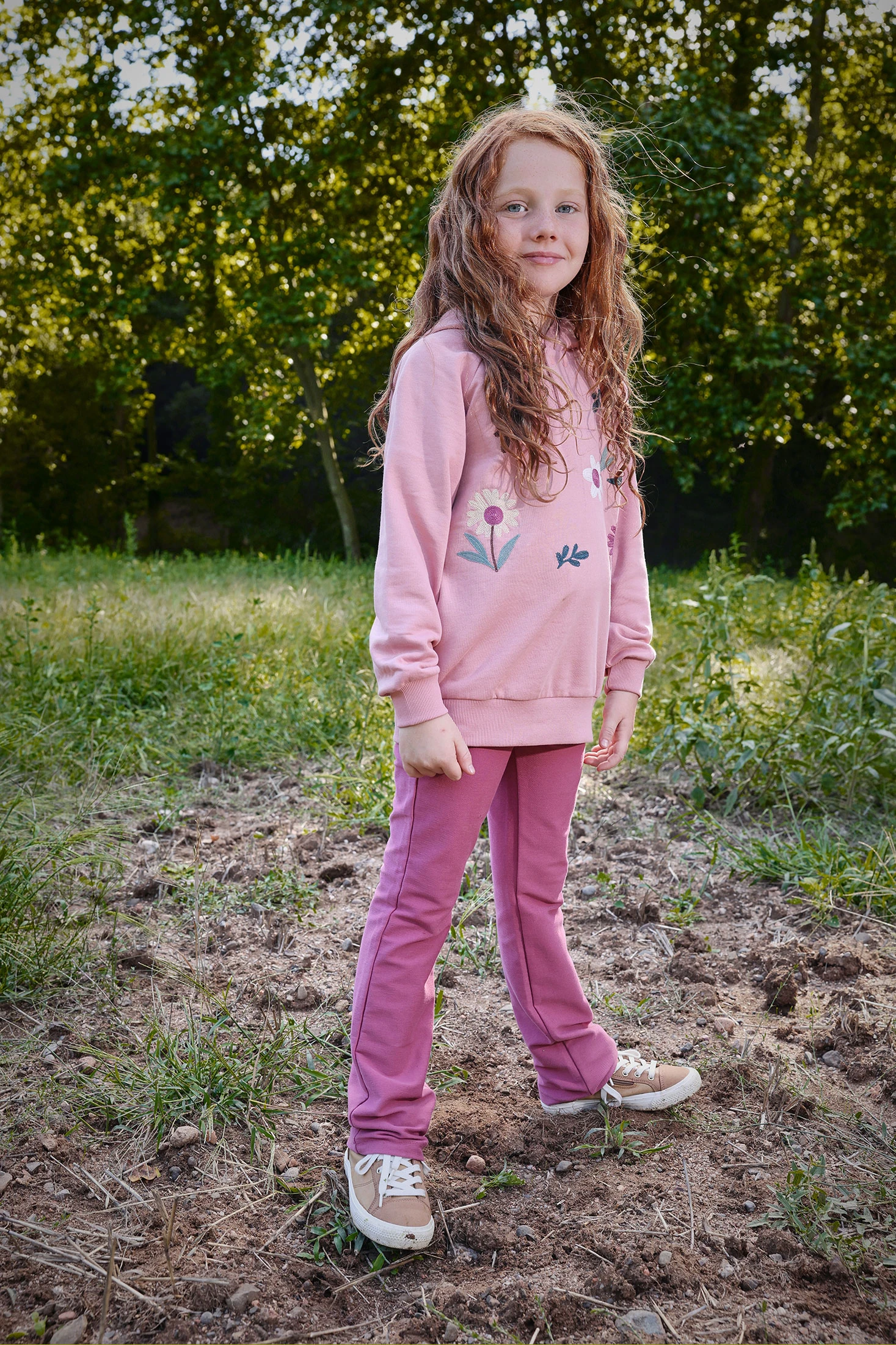 Sweatshirt fille en molleton rose à fleurs