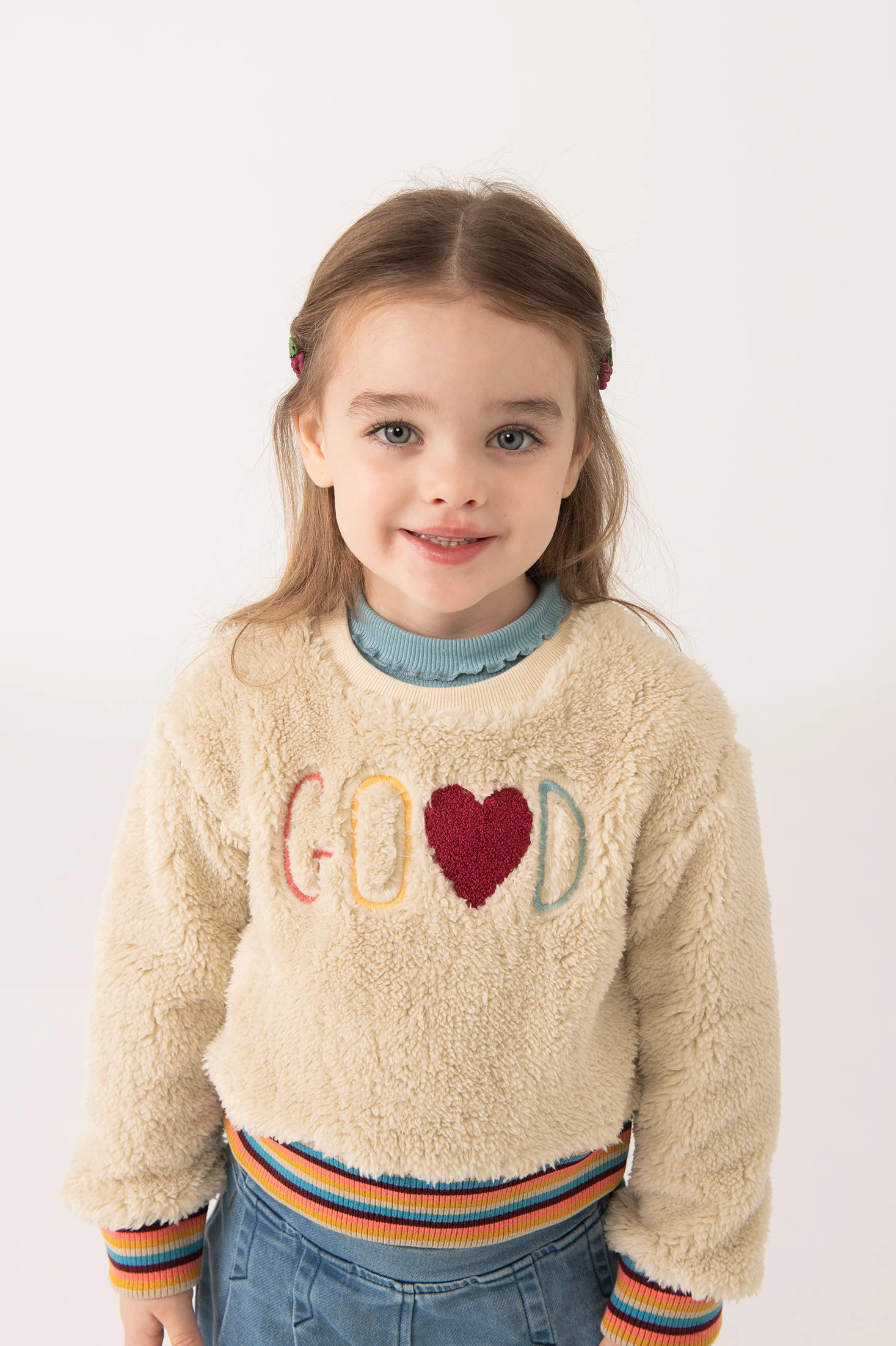 Sweat en tricot pour fille de couleur beige, décoré avec un design de lettres, idéal pour les saisons d'automne et d'hiver, offrant chaleur et confort. Confectionné dans un doux tissu tricoté, il garantit que votre bébé reste bien au chaud sans sacrifier le confort. Disponible en tailles allant de 12 mois à 10 ans, il s'adapte facilement à la croissance de votre petite. Parfait pour être combiné avec des pantalons, ce vêtement offre un look décontracté et moderne, idéal pour un usage quotidien.