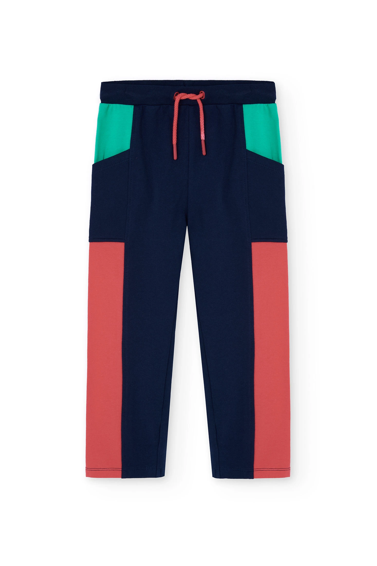 Pantalon fille en molleton color block