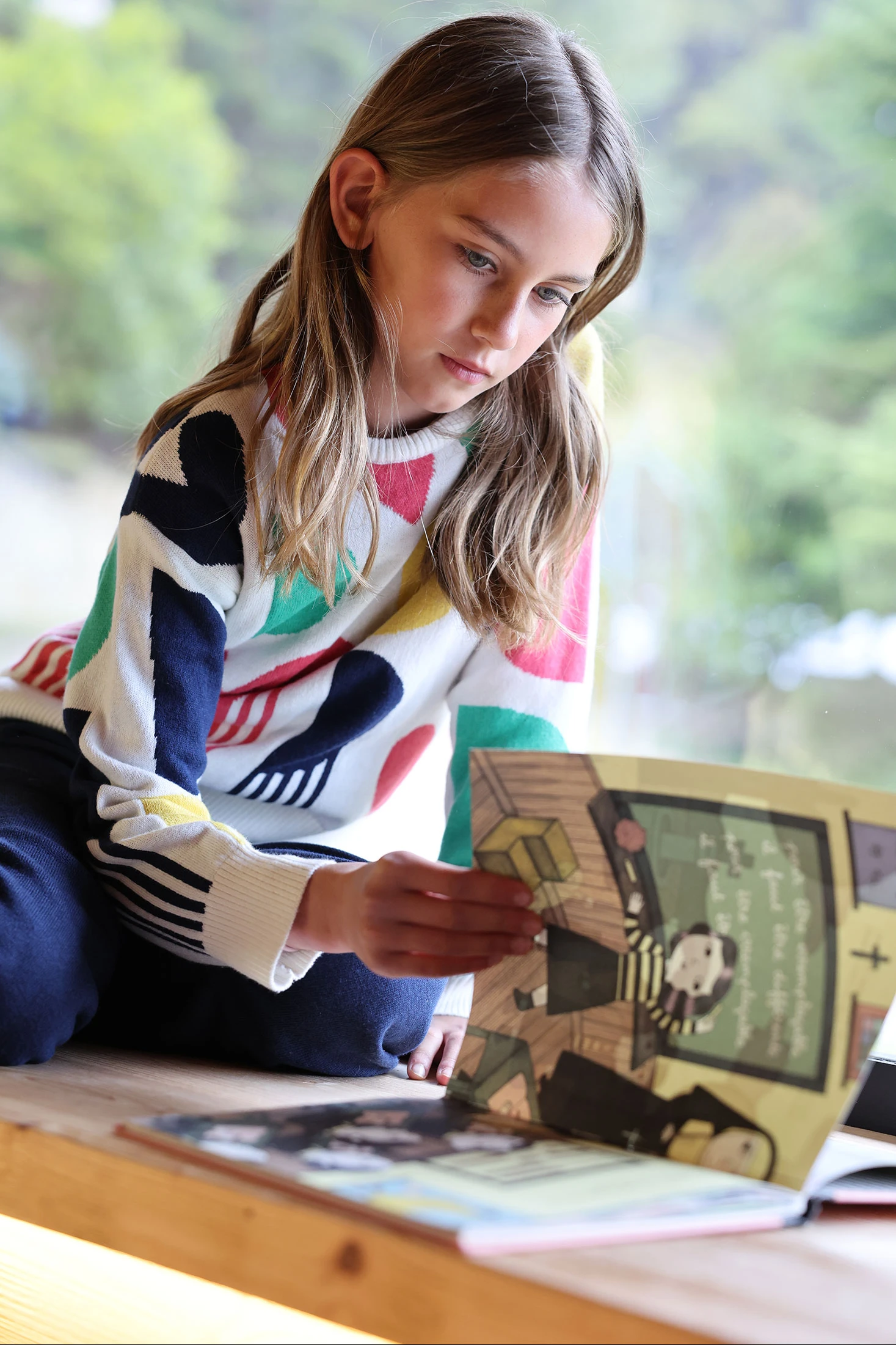 Pull fille blanc imprimé