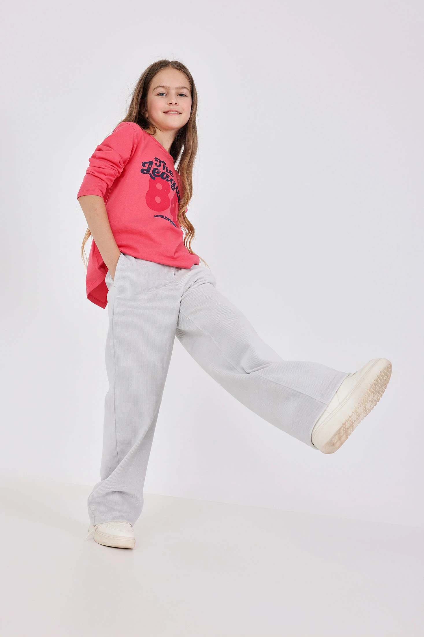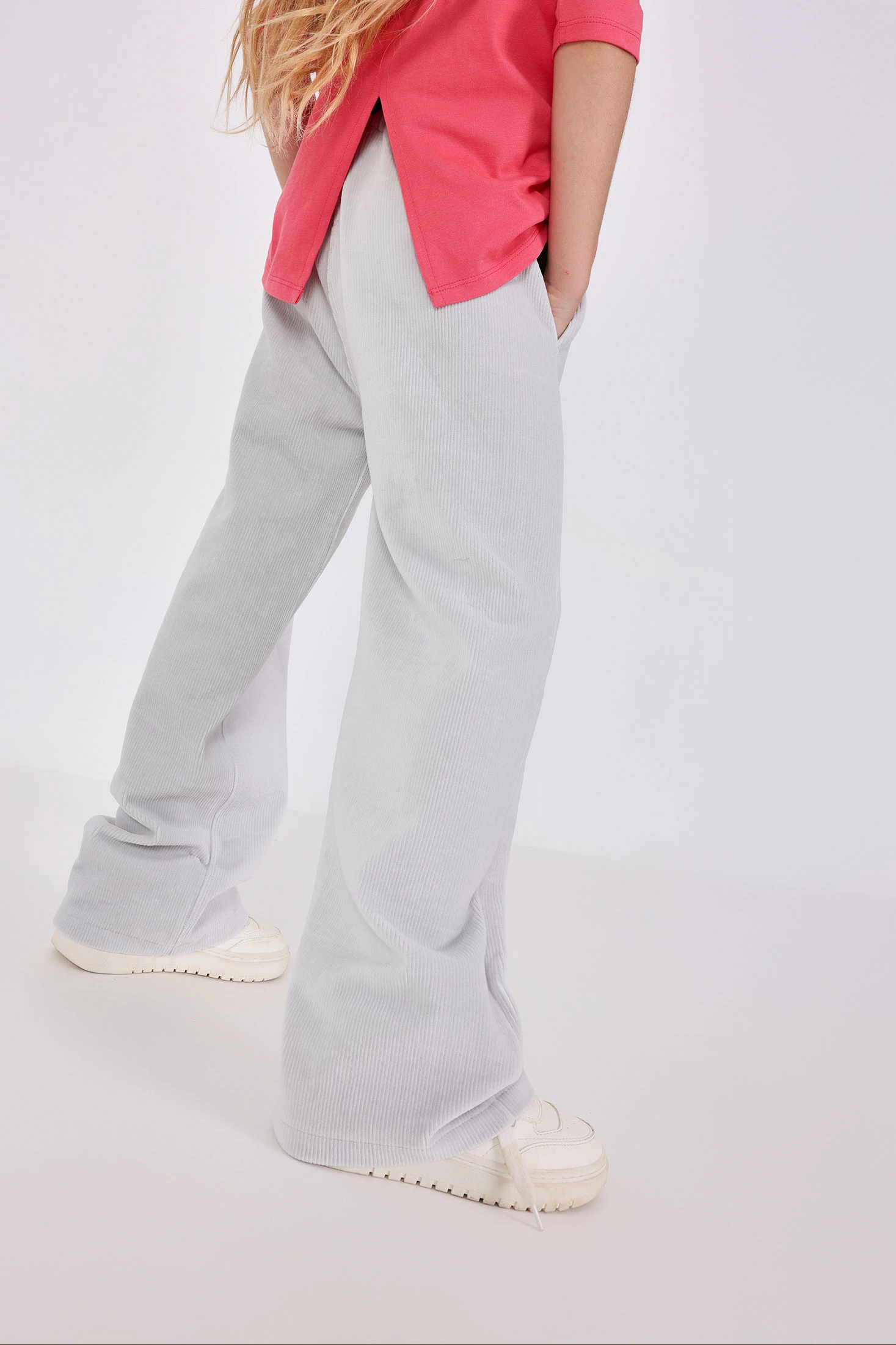 Pantalon en velours côtelé pour fille dans un élégant ton gris, spécialement conçu pour les saisons d'automne et d'hiver. Fabriqué avec un tissu de velours côtelé doux qui offre chaleur et confort, il est idéal pour garder les filles au chaud lors des journées les plus froides. Le design classique à taille élastique garantit un ajustement confortable et polyvalent. Disponible dans les tailles allant de 2 à 14 ans, c'est un vêtement parfait pour assortir avec des pulls et des vestes. Un choix pratique et stylé pour renouveler la garde-robe enfantine avec une touche moderne et intemporelle.