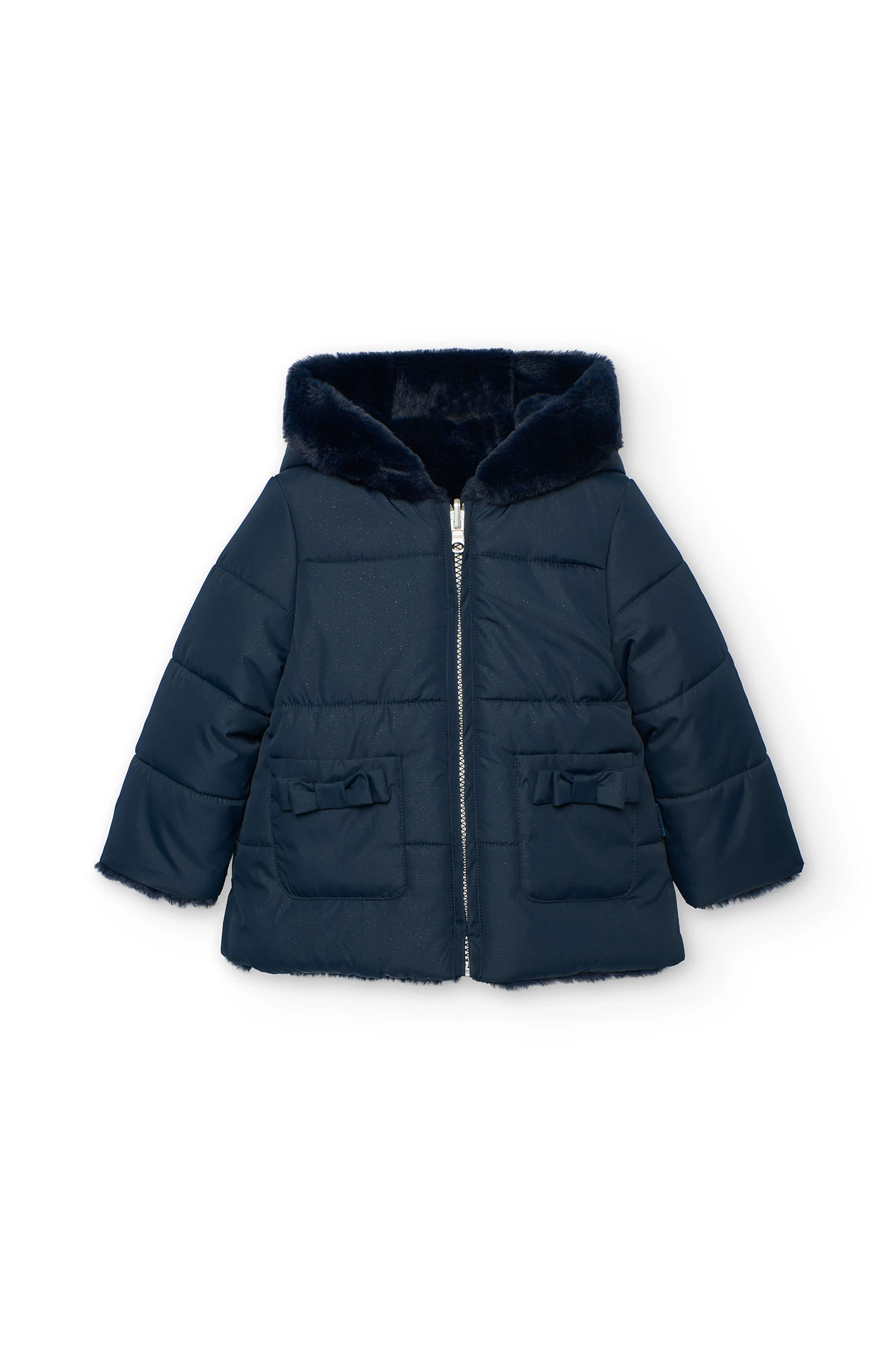 Parka en tissu technique réversible bleu marine pour fille, conçue pour affronter l'hiver avec élégance et fonctionnalité. Confectionnée en matériau résistant à l'eau, elle assure une protection contre le froid et la pluie. Elle est dotée d'une fermeture éclair frontale et d'une capuche amovible, offrant confort et chaleur à chaque utilisation. Disponible en tailles de 12 mois à 10 ans, elle est une option polyvalente et pratique pour diverses occasions. Parfaite pour accompagner des tenues aussi bien décontractées que formelles, elle garantit style et chaleur durant les jours les plus froids de l'année.