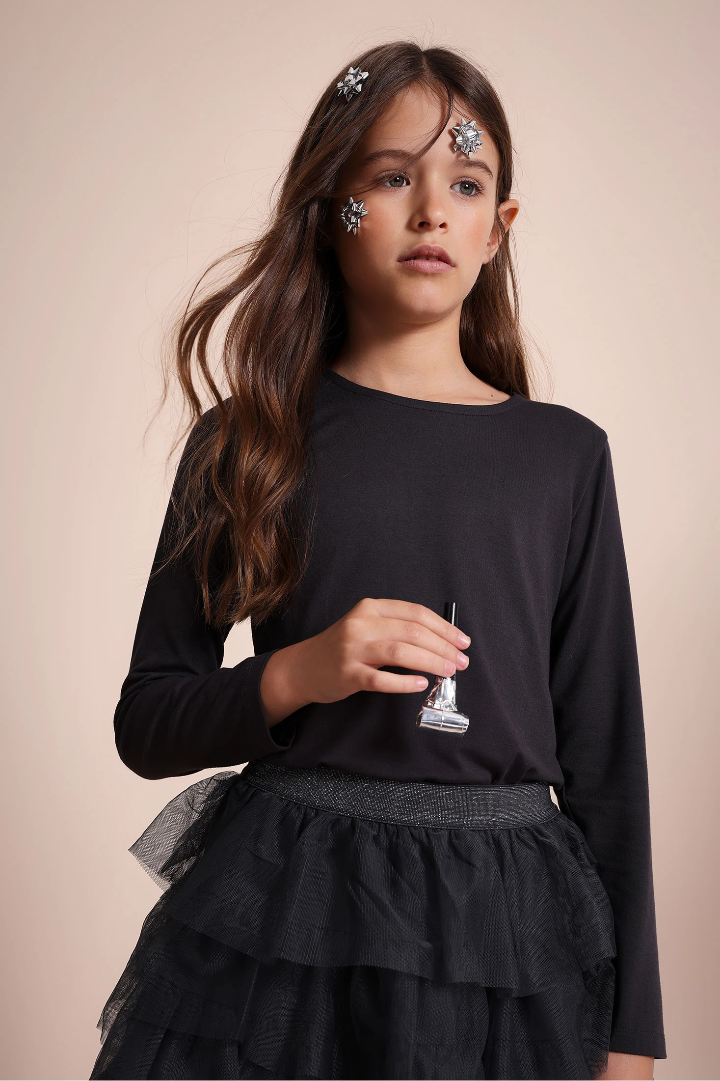 T-shirt en maille grise pour fille, parfaite pour un usage quotidien en toute saison. Fabriquée dans un tissu en maille doux et respirant, elle garantit confort et flexibilité pour les activités des enfants. Disponible en tailles allant de 2 à 14 ans, elle se combine facilement avec des jupes et des pantalons, convenant aussi bien pour des occasions décontractées que plus formelles. Elle ajoute une touche classique et intemporelle à la garde-robe de toute fille, devenant une pièce essentielle pour toutes les saisons.