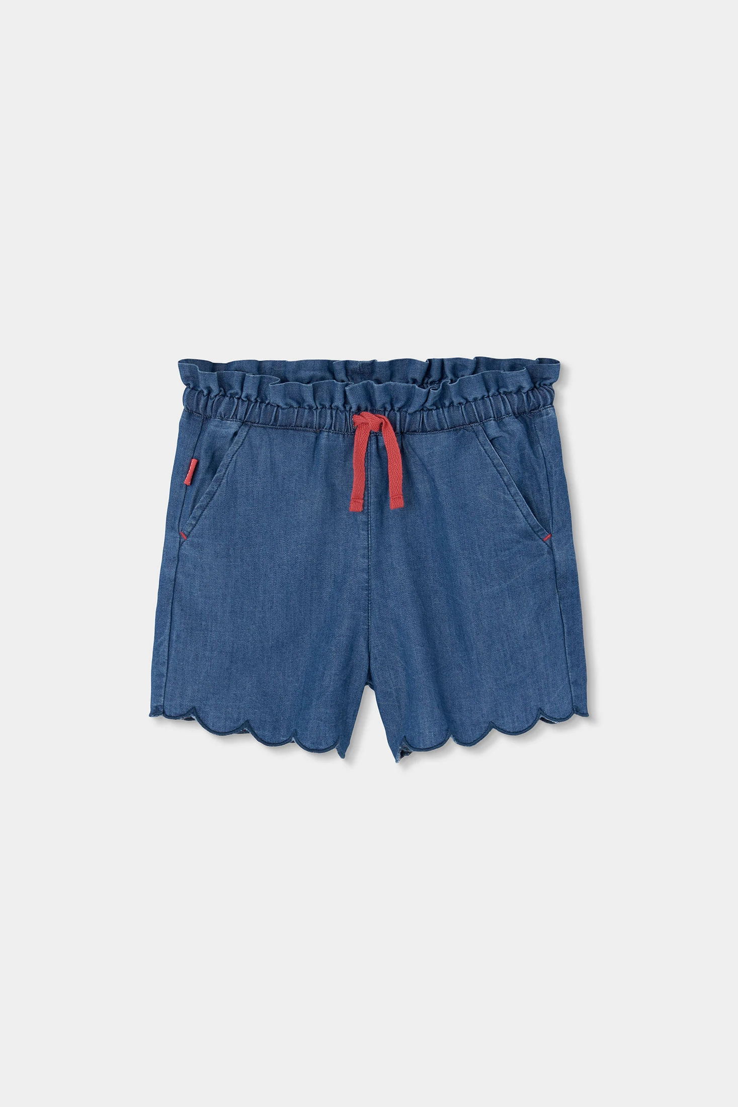 Bermudas en denim bleu offrent une option idéale pour les filles, disponibles en tailles de 12 mois à 10 ans. Confectionnées dans un tissu de denim doux, elles garantissent confort et durabilité. Le design présente un ourlet ondulé qui ajoute une touche ludique. Elles disposent d'une taille élastique et d'un cordon ajustable pour un ajustement parfait, ainsi que de grandes poches latérales. Leur couleur bleu polyvalente permet de les assortir facilement avec des t-shirts de couleurs vives ou neutres. Parfaites pour un usage quotidien pendant les jours chauds, elles offrent un style décontracté et pratique.