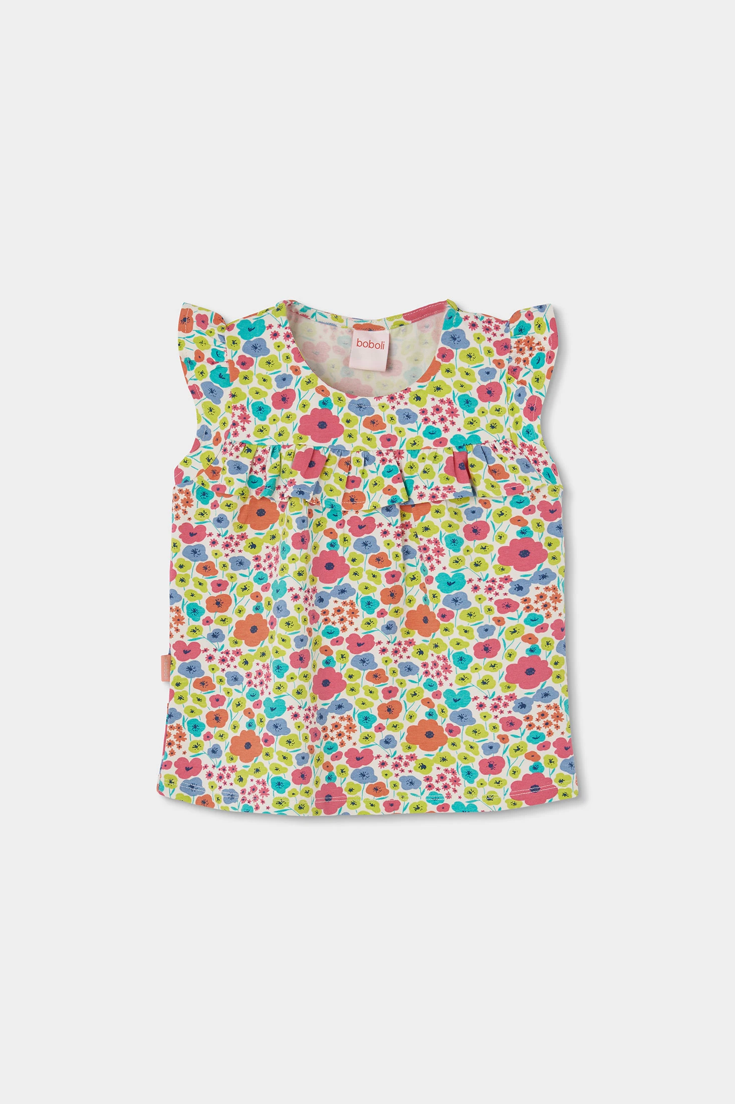 T-shirt en maille pour fille, idéale pour les plus petites, avec un imprimé floral joyeux aux couleurs vives. Le matériau en maille offre confort et flexibilité, parfait pour un usage quotidien. Elle est dotée de manches courtes et d'un design sans col, facilitant son habillage pour les plus petits. Disponible en tailles de 12 mois à 14 ans, elle s'adapte à la croissance de la fille. Son design coloré permet de l'associer facilement avec d'autres vêtements, en faisant une option polyvalente et amusante pour n'importe quelle occasion.