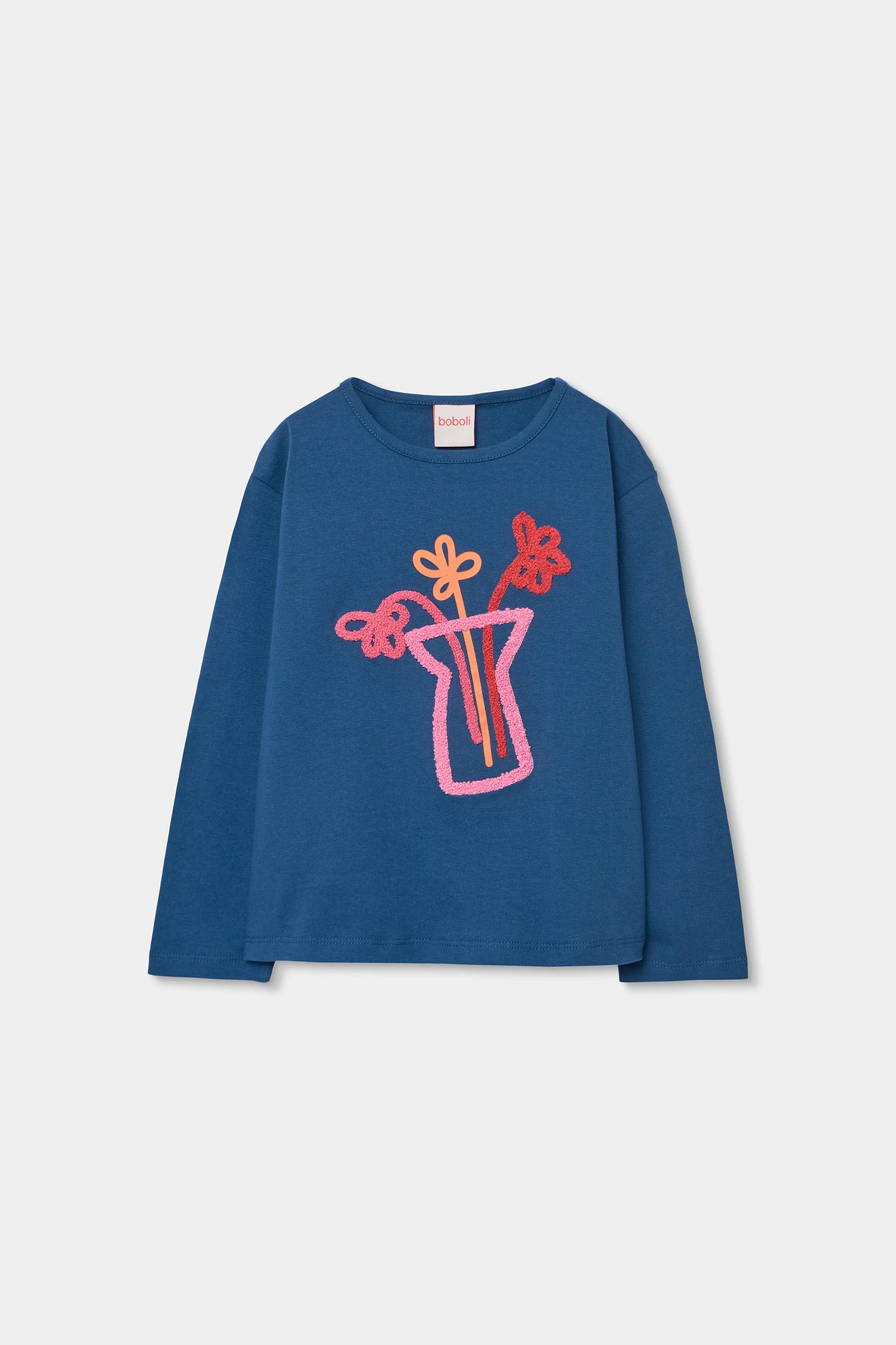 T-shirt en tricot bleu marine pour fille, idéale pour l'automne et l'hiver. Confectionnée en coton, elle offre confort et douceur. Son design comprend un imprimé coloré avec un vase et des fleurs, ajoutant une touche amusante et créative. Elle a un col rond et des manches longues, parfaites pour les jours plus frais. Disponible en tailles allant de 12 mois à 14 ans, c'est un vêtement polyvalent qui peut être facilement assorti avec des jeans ou des jupes, apportant style et confort à la garde-robe quotidienne.