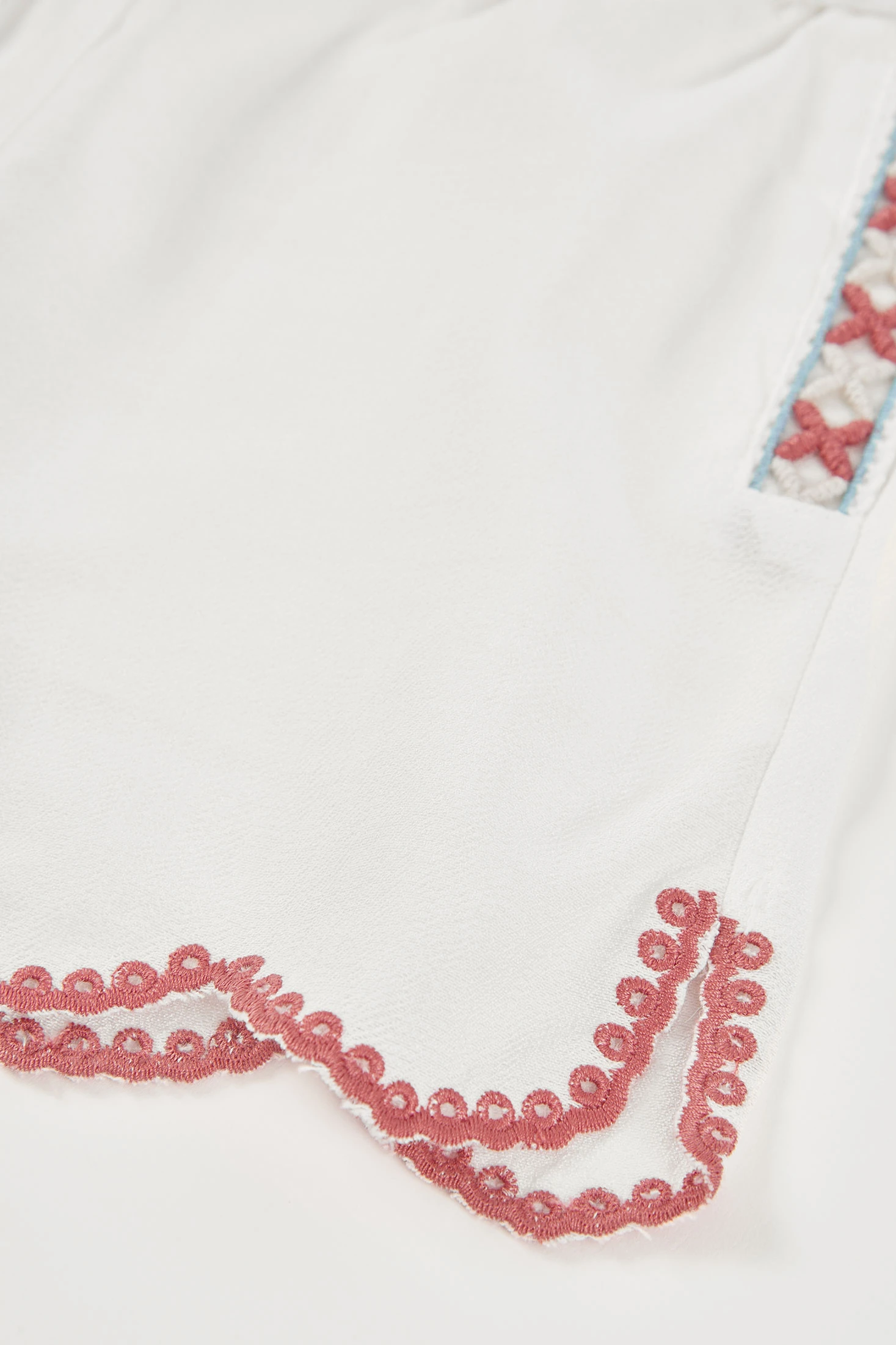 Bermudas blanches en tissu fantaisie, idéales pour les journées d'été, elles offrent confort et fraîcheur. Elles présentent des détails brodés de couleur sur les côtés et un ourlet ondulé, ajoutant une touche amusante et colorée. Leur design fonctionnel comprend une taille élastique avec cordon, s'adaptant bien aux enfants de 12 mois à 10 ans. Elles sont parfaites à assortir avec des t-shirts ou des blouses légères, créant un look frais et estival, idéal pour les activités en plein air et les moments de jeu.