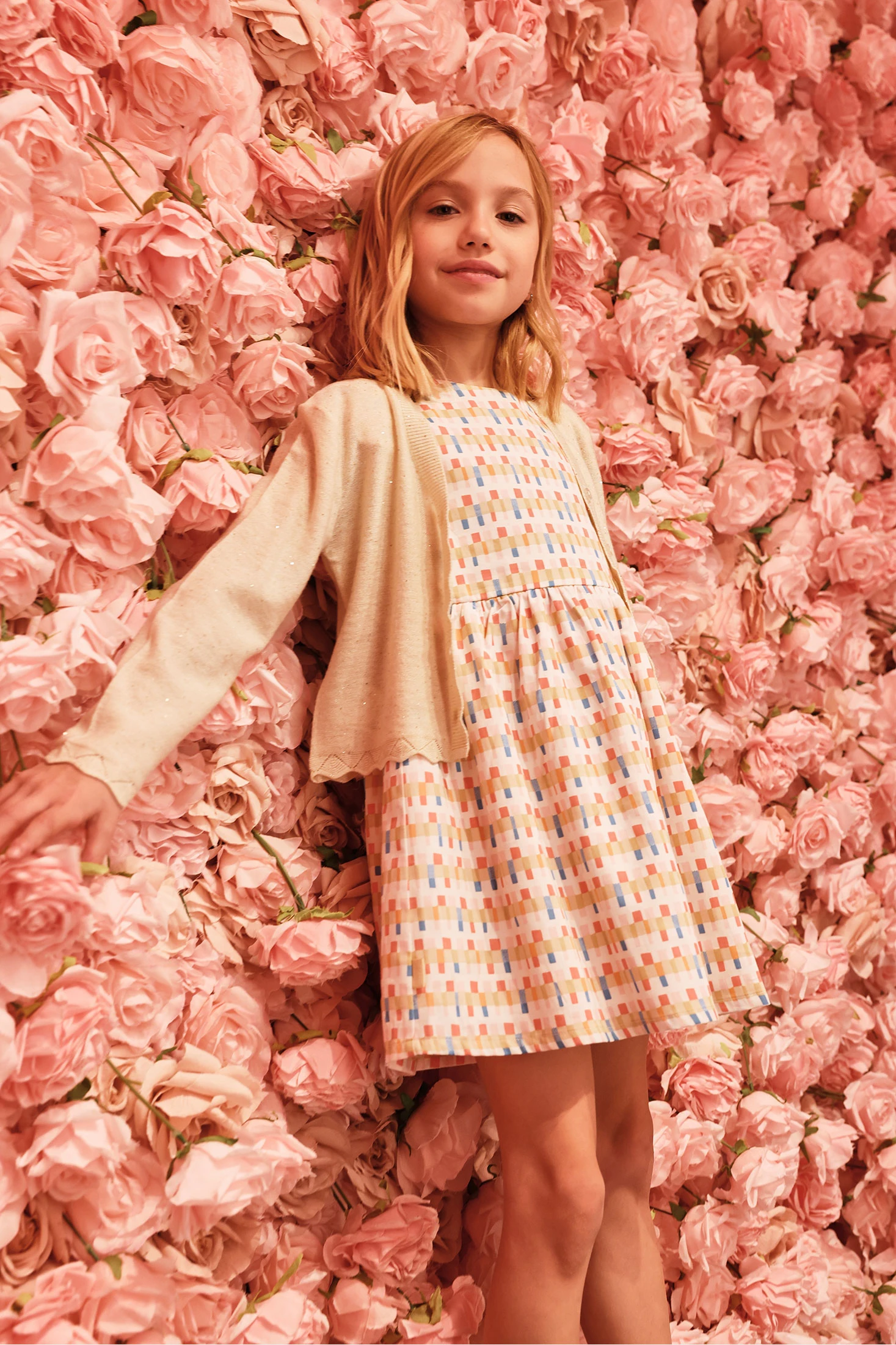 Gilet en tricot pour fille idéal pour le printemps et l'été. Confectionné en tissu tricoté de couleur blanc cassé, il offre chaleur et confort. Le design inclut des boutons sur le devant et un bord ondulé qui ajoute une touche élégante. Disponible en tailles de 12 mois à 10 ans. Sa couleur neutre permet de l'associer facilement avec différentes tenues, faisant de ce vêtement une option polyvalente et pratique pour la garde-robe enfantine.