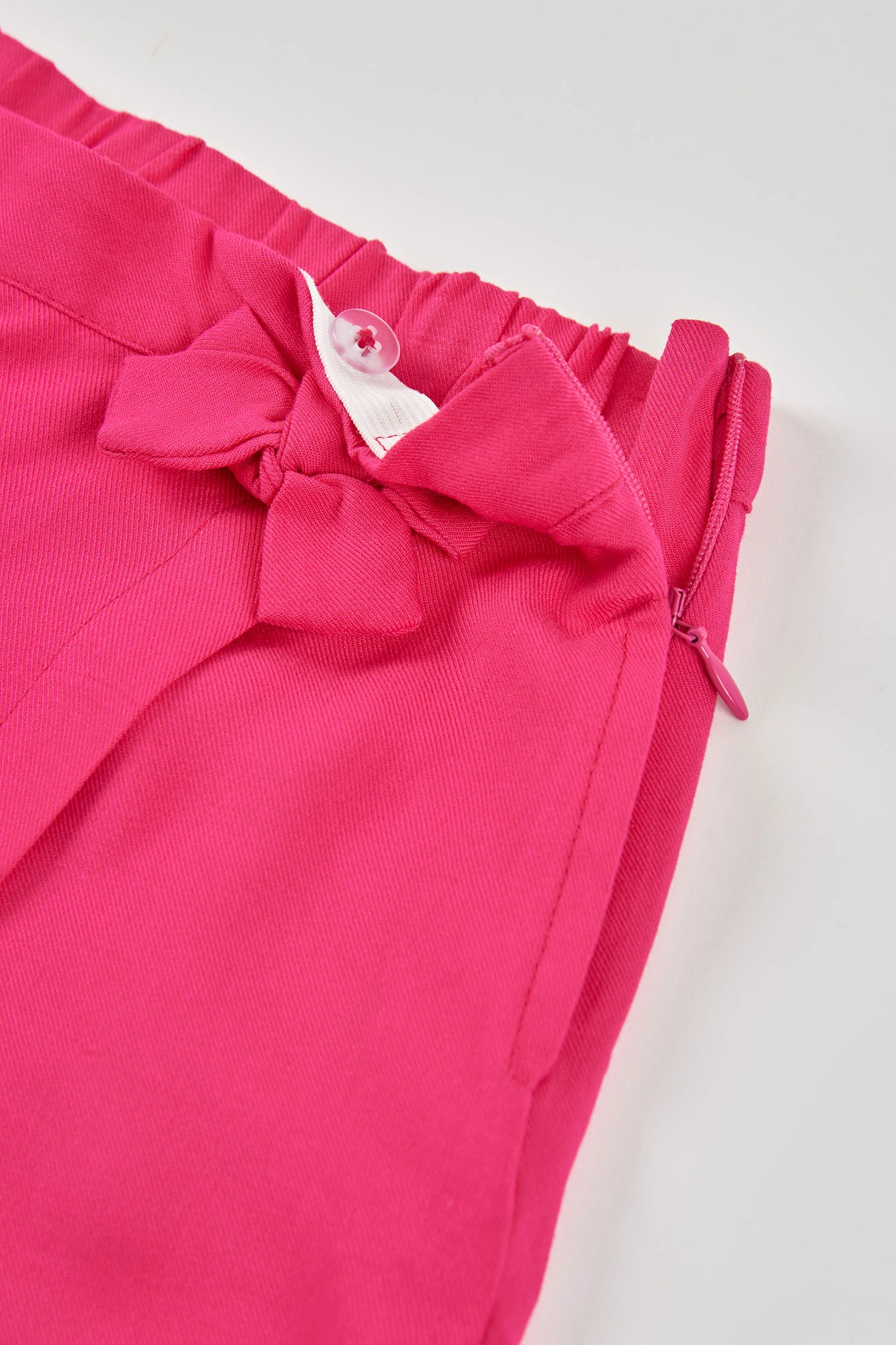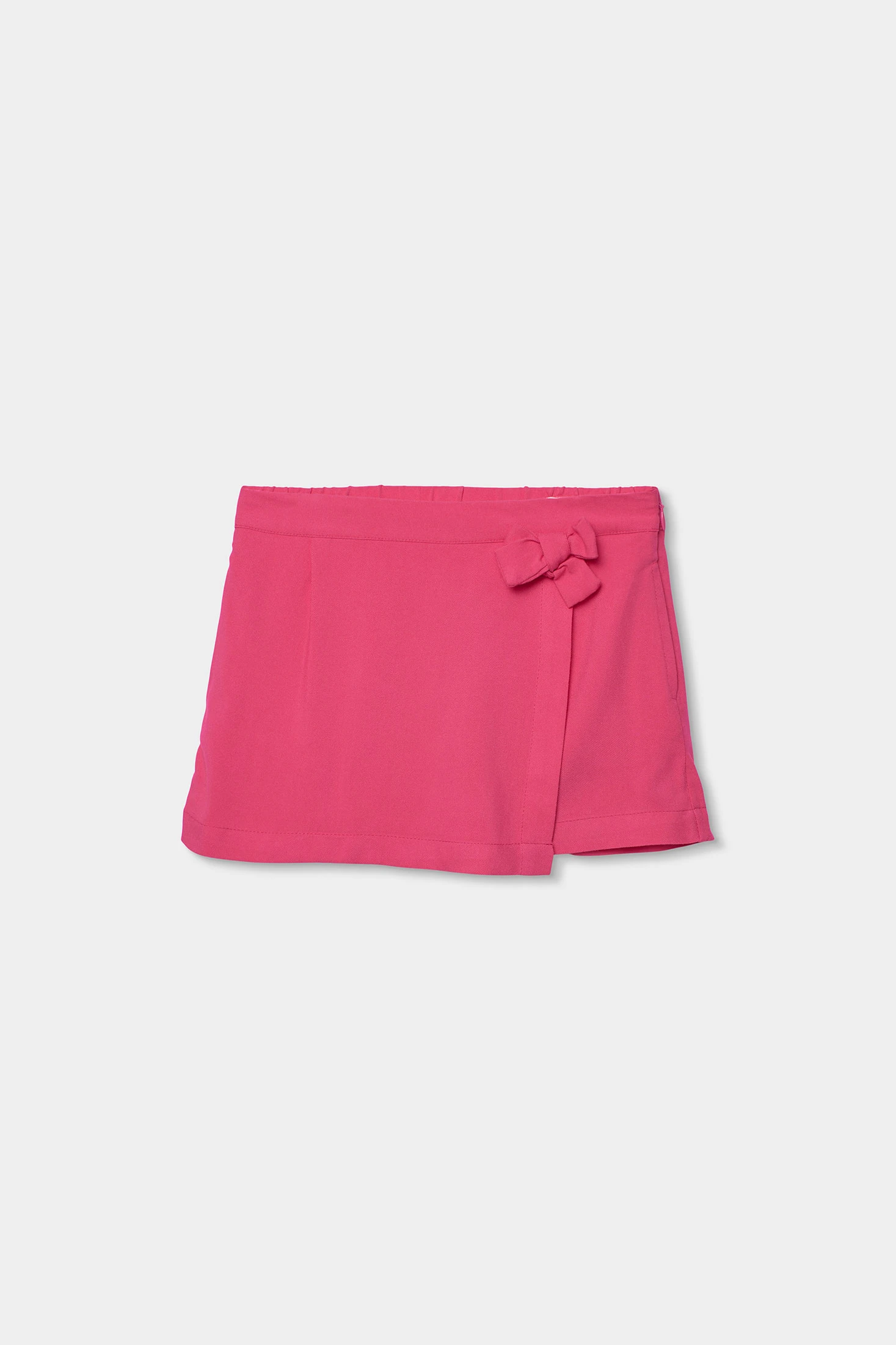 Jupe-short pour fille qui se distingue par sa polyvalence, idéale pour l'été. Avec une couleur fraise vibrante, le design inclut un noeud décoratif qui ajoute une touche charmante. Fabriquée dans un tissu doux et confortable, elle est parfaite pour le quotidien. Disponible en tailles de 2 à 14 ans, ce vêtement combine fonctionnalité et style. Idéale à associer avec des t-shirts légers, c'est une option pratique pour garder les filles à l'aise et stylées pendant les mois les plus chauds.