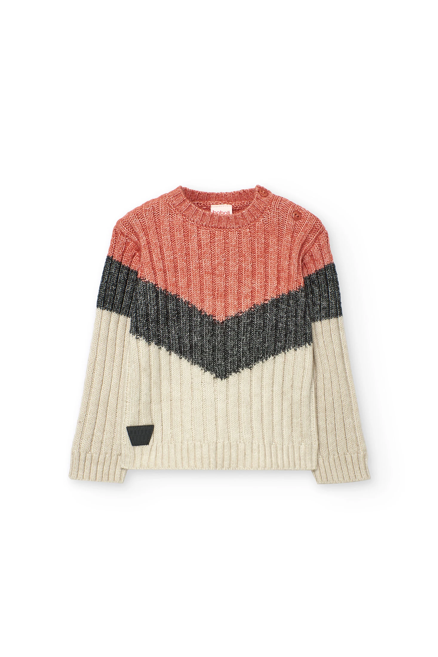 Pull en maille pour enfant de couleur orange, idéal pour l'automne et l'hiver grâce à son tissu doux qui offre confort et chaleur. Le design dans des tons terre cuite, noir et crème apporte un style moderne et distinctif à la garde-robe des enfants. Ses manches longues et son col rond offrent une protection supplémentaire par temps froid. Disponible en tailles de 12 mois à 10 ans, il permet polyvalence et style pour tout événement. Parfait pour assortir avec des jeans ou des joggers, créant un look décontracté et actuel pour votre petit.