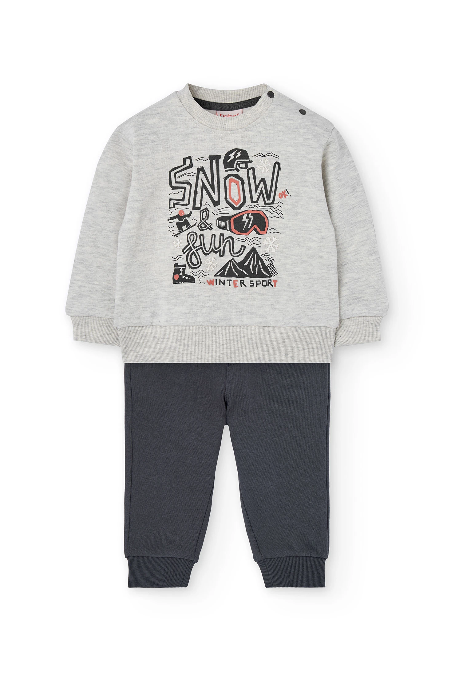 Ensemble en molleton pour garçon, idéal pour les journées froides d'hiver, en couleur écrue avec un imprimé de ski, offre style et confort, gardant les plus petits au chaud lors des activités en plein air. Confectionné en matière douce et chaude, il est disponible en tailles allant de 12 mois à 10 ans, garantissant un ajustement parfait pour chaque âge. Option polyvalente qui peut être combinée avec des bottes résistantes et des accessoires d'hiver, créant un look complet et fonctionnel.