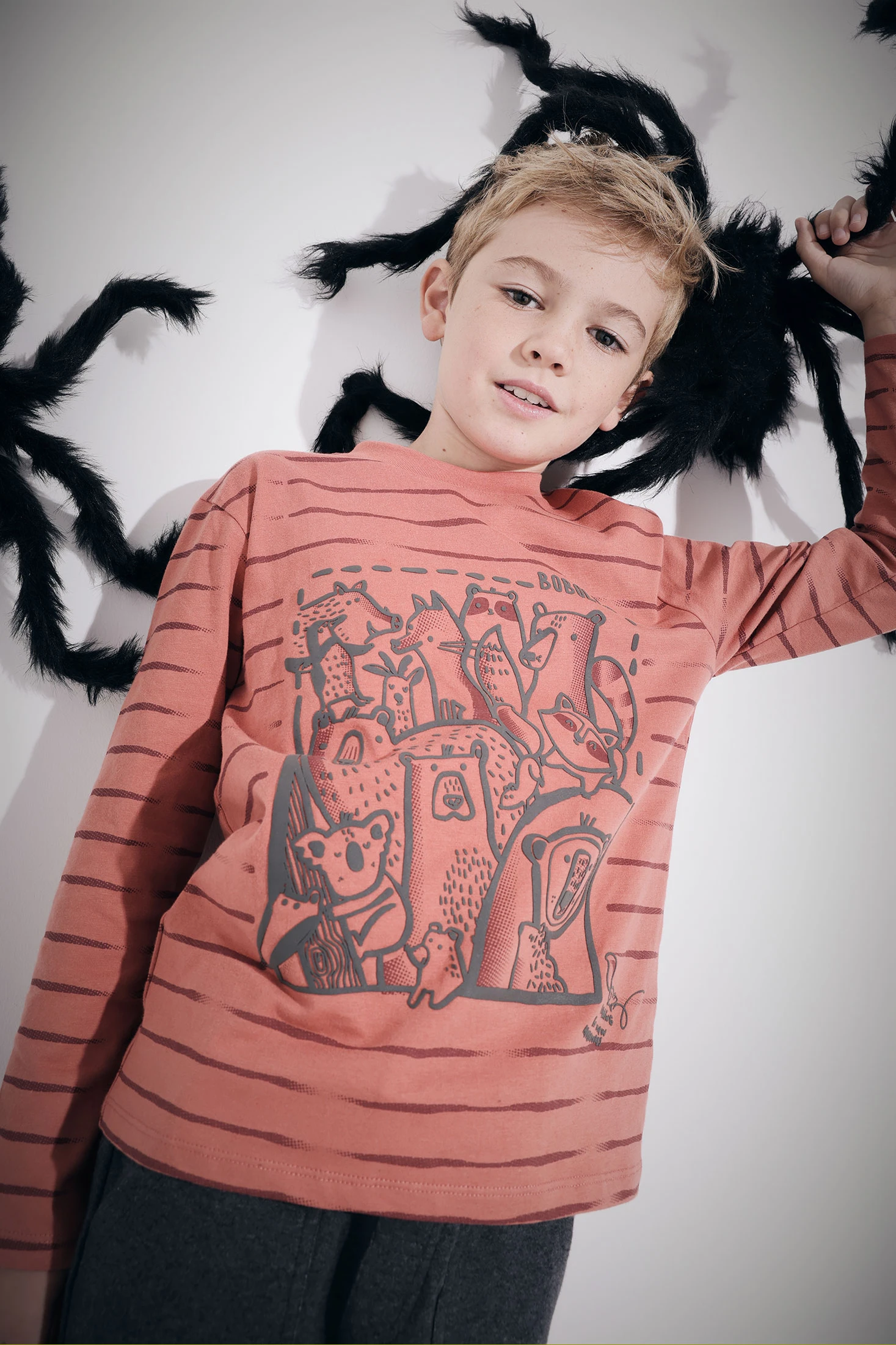 T-shirt garçon en maille animaux orange