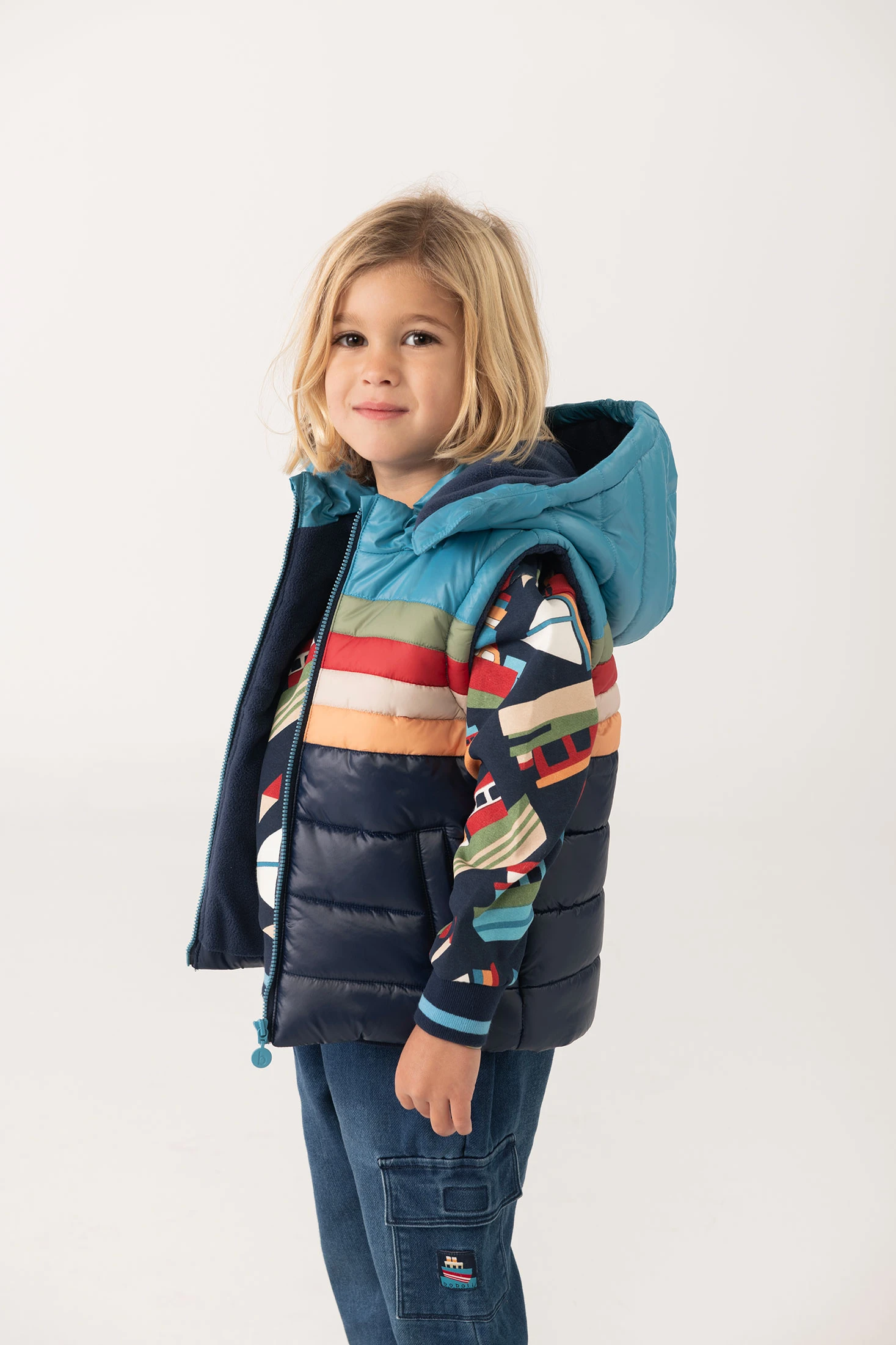 Gilet réversible en tissu technique pour garçon, idéal pour ajouter une couche de chaleur et de style en toute saison. Confectionné dans un tissu doux et respirant, il garantit confort sans compromettre l'élégance. Disponible en tailles allant de 12 mois à 10 ans, il est parfait pour assortir avec des chemises ou des t-shirts à manches longues, créant des looks classiques et soignés. Son design classique et épuré le rend polyvalent pour toute occasion, garantissant aux enfants d'avoir un look impeccable et stylé.