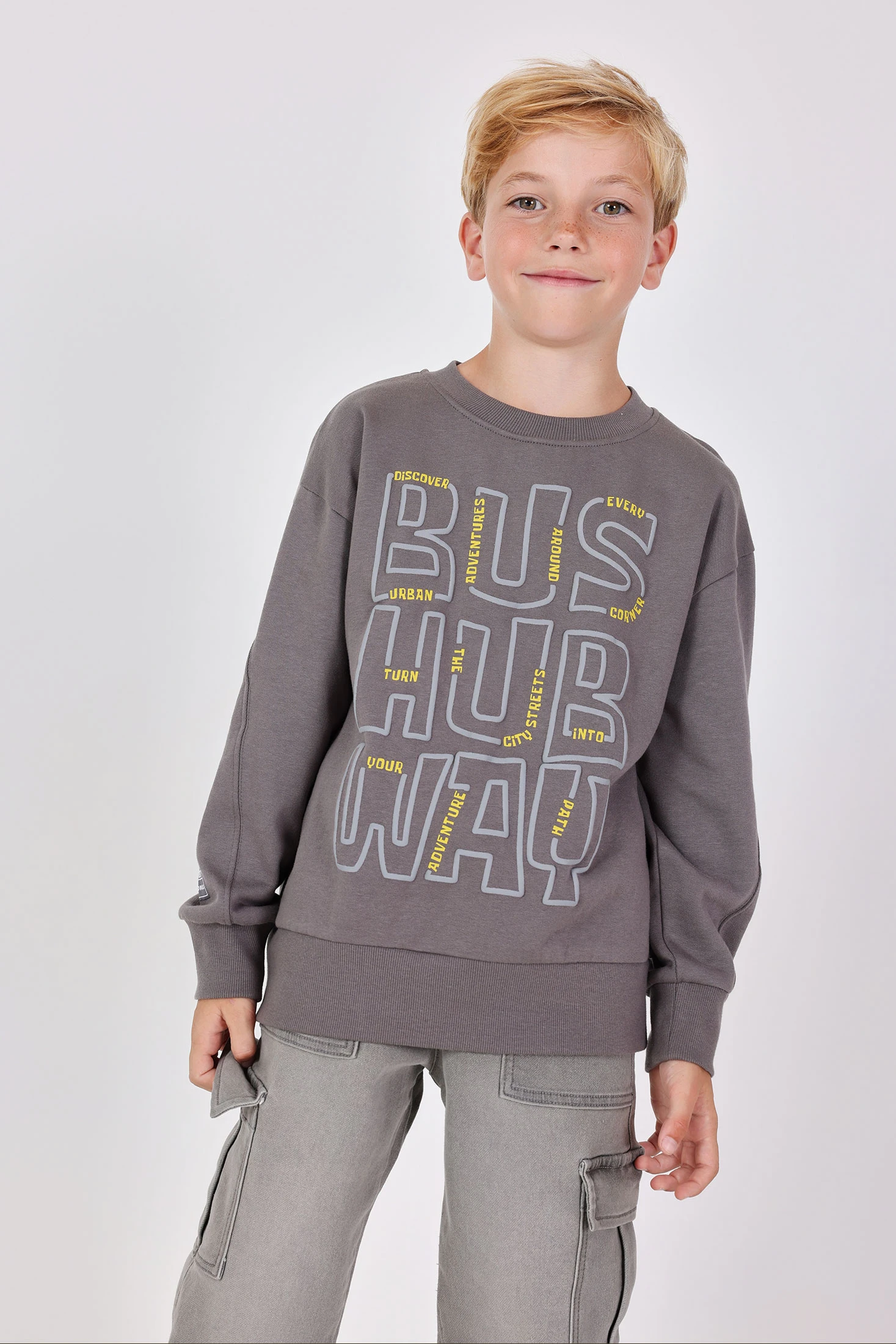 Sweat-shirt garçon en molleton gris avec lettres
