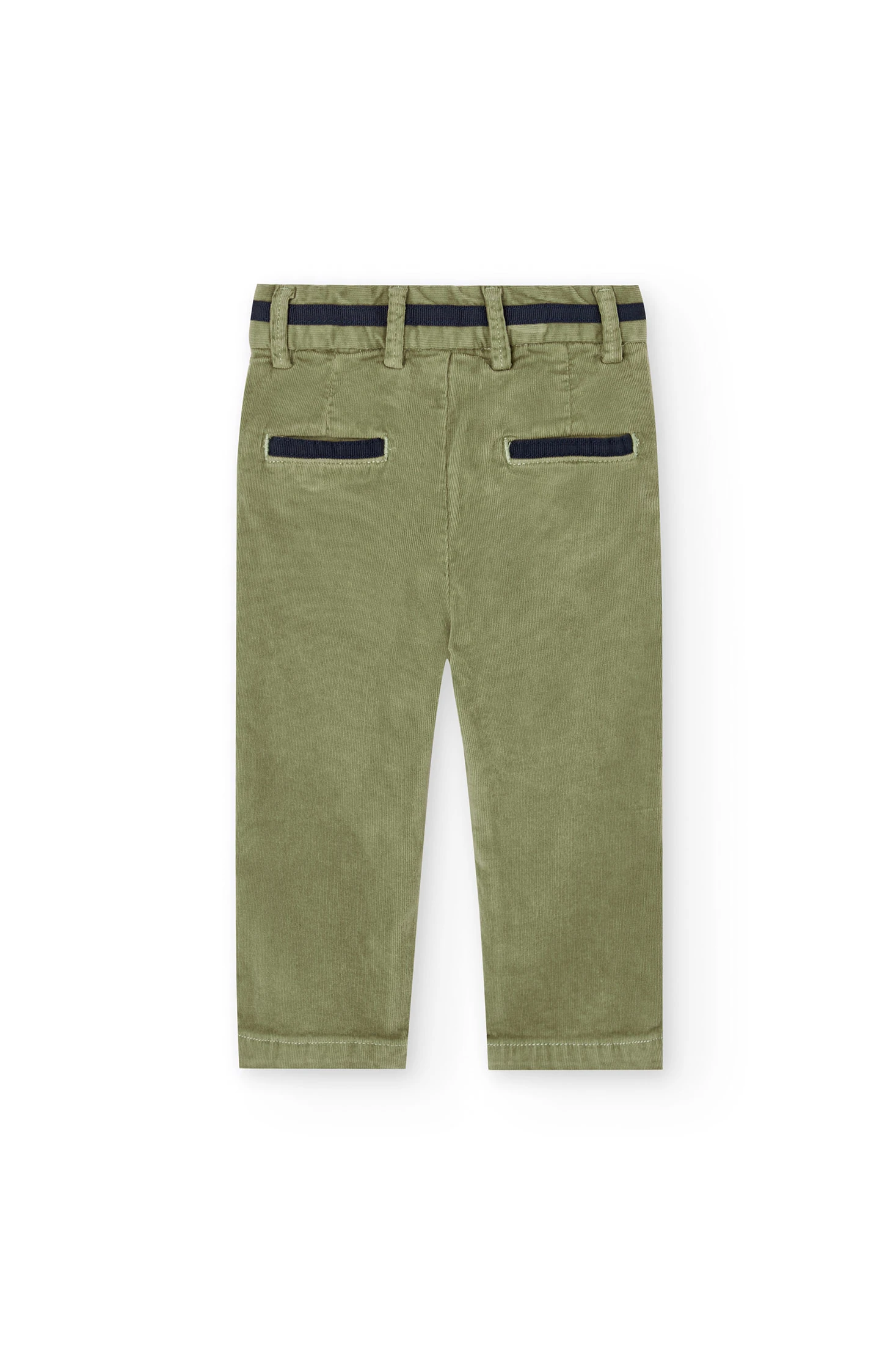 Pantalon en maille pour garçon de couleur verte, parfait pour garder votre petit confortable et au chaud en toute saison. Confectionné dans un tissu doux et extensible, il offre une liberté de mouvement idéale pour le quotidien. Disponible en tailles de 12 mois à 10 ans. Design classique qui facilite les combinaisons avec n'importe quel t-shirt ou pull, assurant un look charmant et polyvalent pour votre enfant.