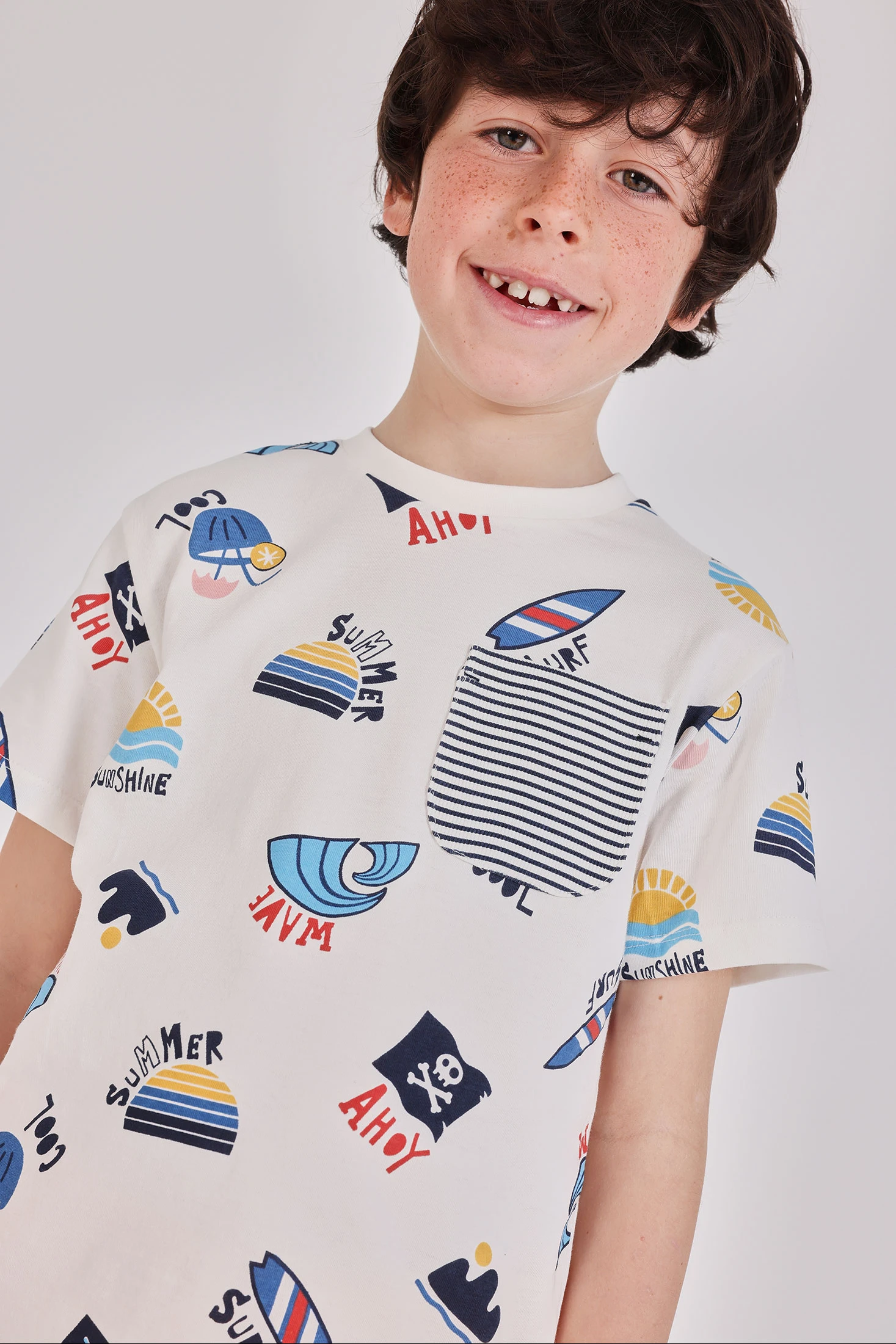 T-shirt en coton pour garçon, parfaite pour l'été. Avec un motif amusant de plusieurs couleurs. Son tissu en coton est doux et respirant, idéal pour les journées chaudes. Disponible en tailles allant de 12 mois à 10 ans. Avec une poche avant pratique à rayures et une coupe confortable, cette t-shirt est idéale pour des tenues décontractées et stylées.