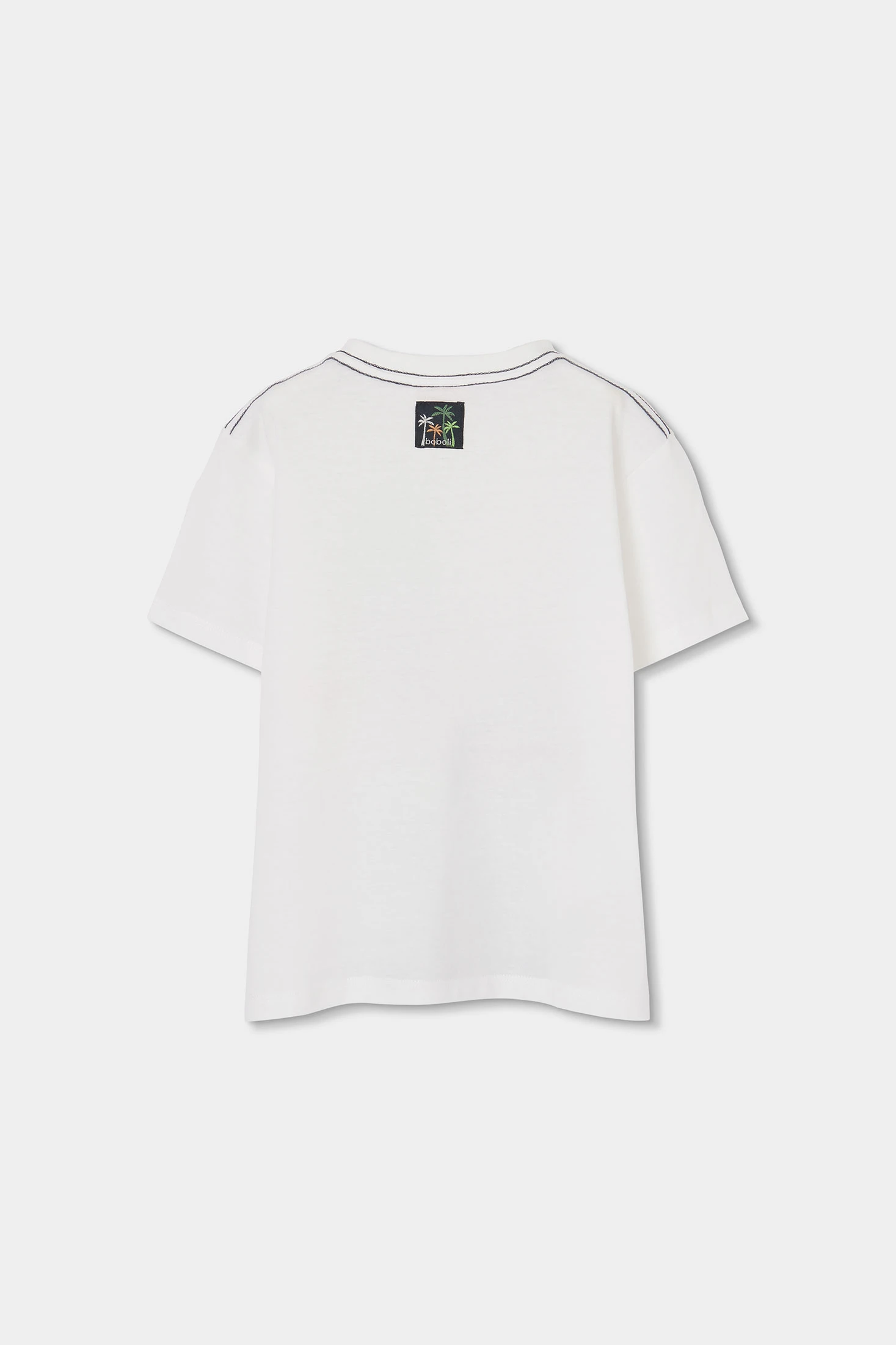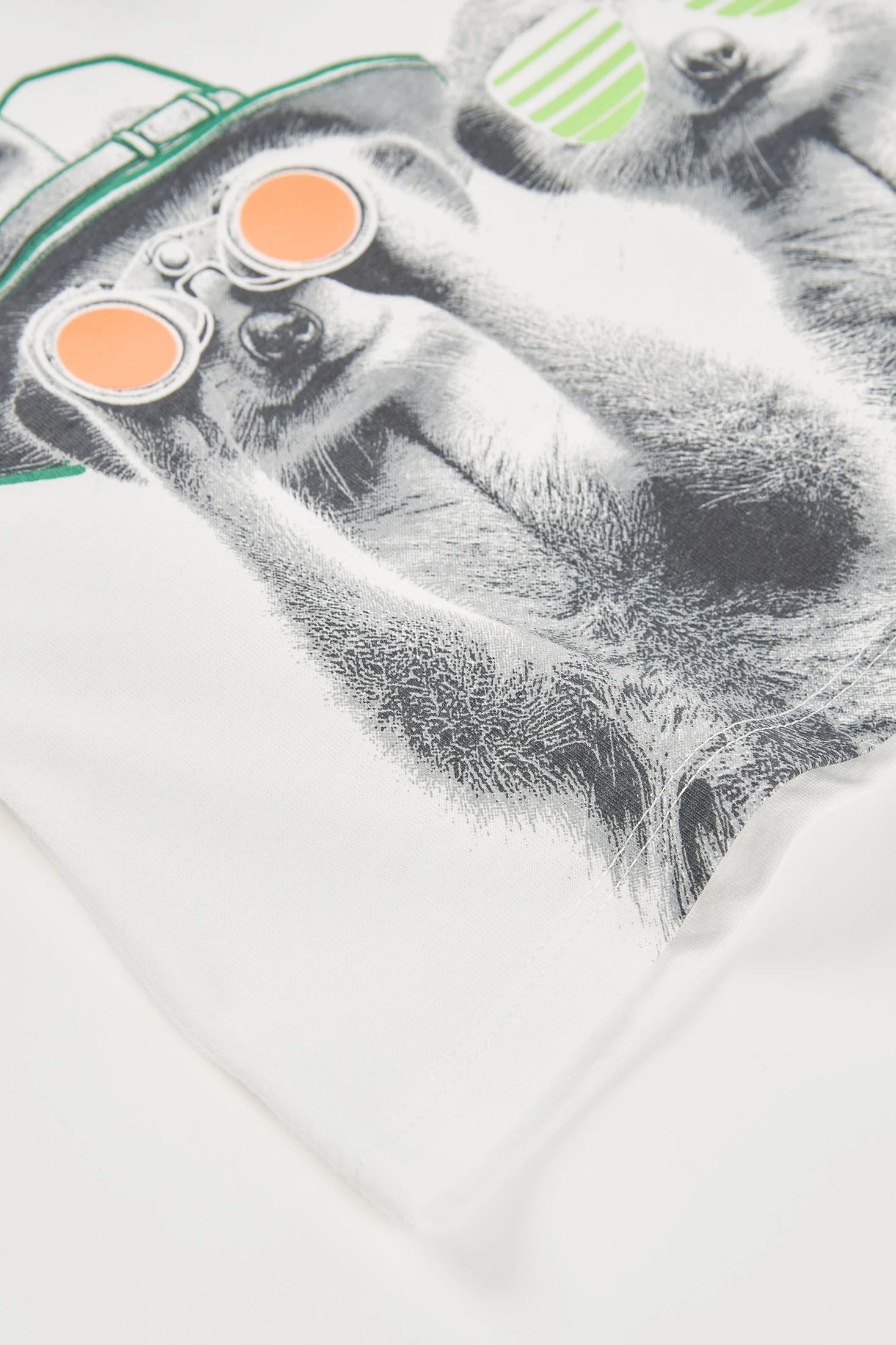 T-shirt en coton blanc pour garçon, idéale pour un look décontracté et amusant. Elle présente un motif de suricates avec des lunettes et un chapeau, ajoutant une touche ludique. Le design inclut le mot "Explore" en couleurs éclatantes. Son matériau en coton offre confort et est parfait pour une utilisation quotidienne par temps chaud. Disponible en tailles de 12 mois à 10 ans, elle s'adapte à la croissance des enfants. Ce vêtement peut être facilement associé à un jean ou un short pour un style frais et moderne.