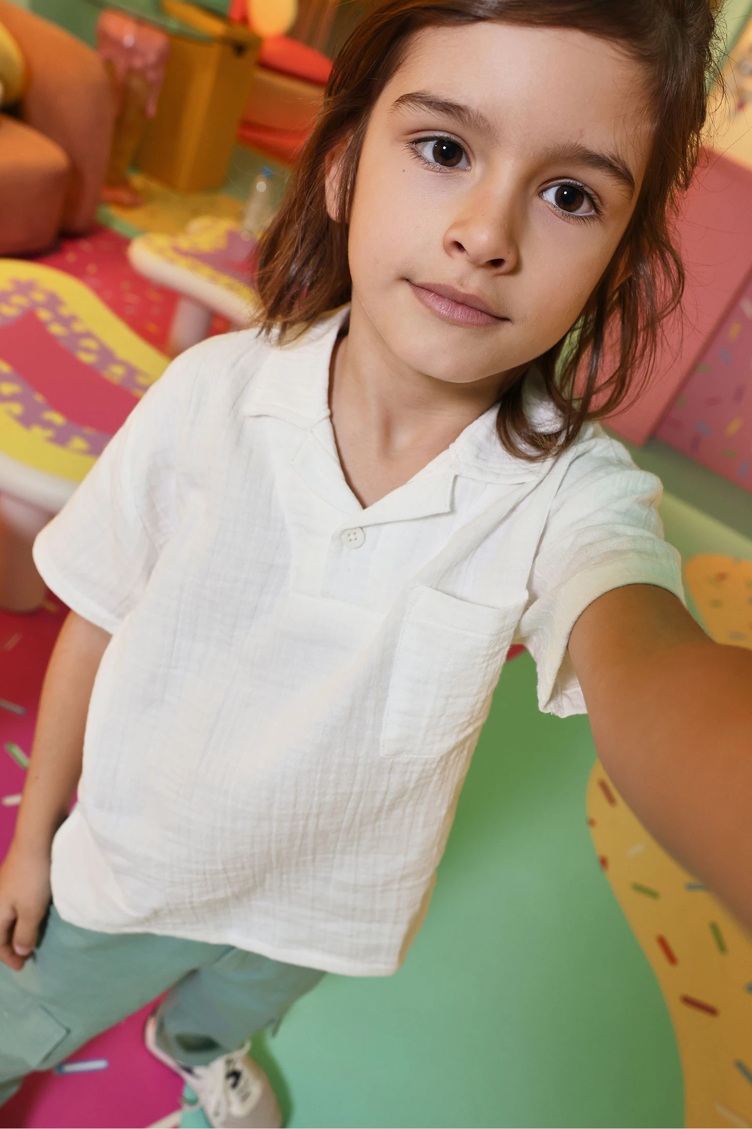 Polo en mousseline de coton blanc cassé pour enfant, parfait pour les climats chauds. Avec un design simple et élégant, il dispose d'un col classique et de manches courtes offrant confort et fraîcheur. Son tissu léger et respirant est idéal pour garder les petits au frais. Disponible en tailles de 12 mois à 10 ans, ce polo est polyvalent et facile à assortir avec différents styles de vêtements pour un look épuré et décontracté. Une option pratique et stylée pour le quotidien.
