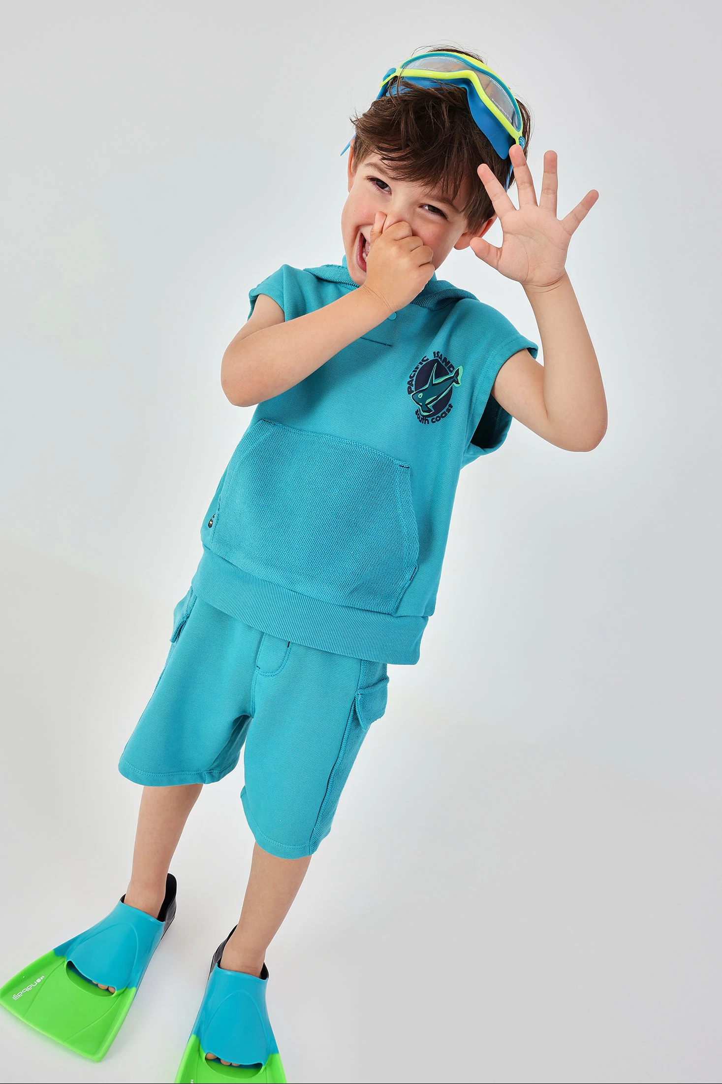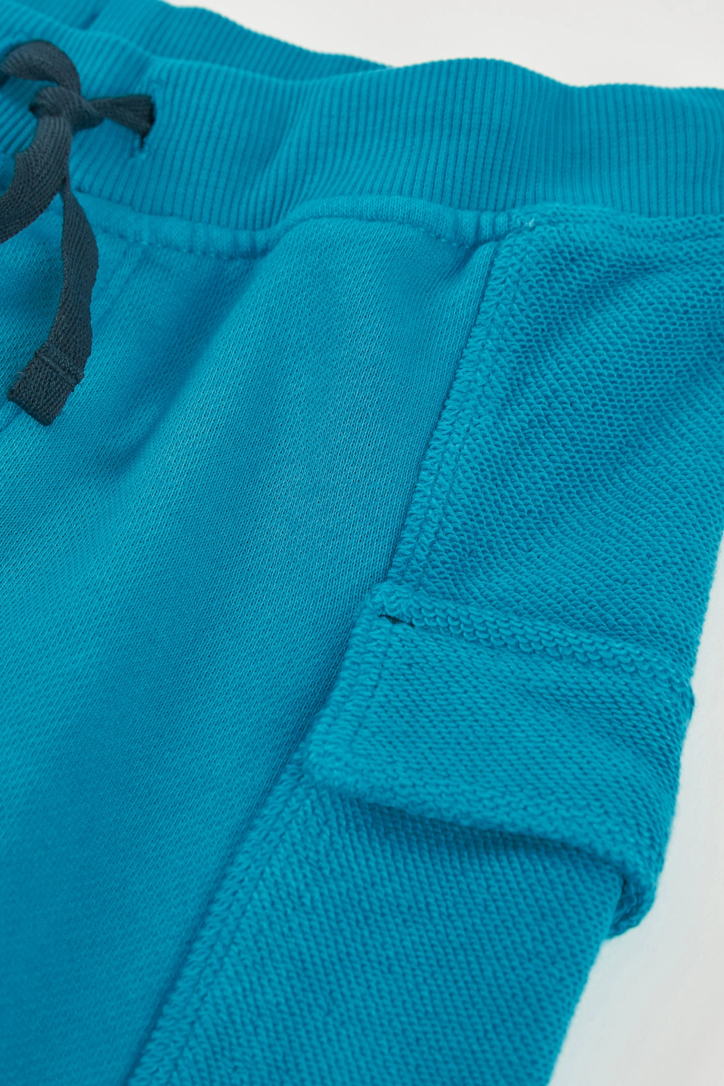 Bermudas en molleton bleu idéales pour les enfants actifs, avec un design pratique incluant des poches latérales parfaites pour ranger de petits objets. Fabriquées dans un matériau en molleton doux, elles offrent confort et liberté de mouvement. Disponibles en tailles de 12 mois à 10 ans, elles s'adaptent à la croissance de votre enfant. La couleur verte vibrante ajoute une touche de fraîcheur au look, les rendant un choix polyvalent pour assortir avec des t-shirts décontractés pendant l'été.