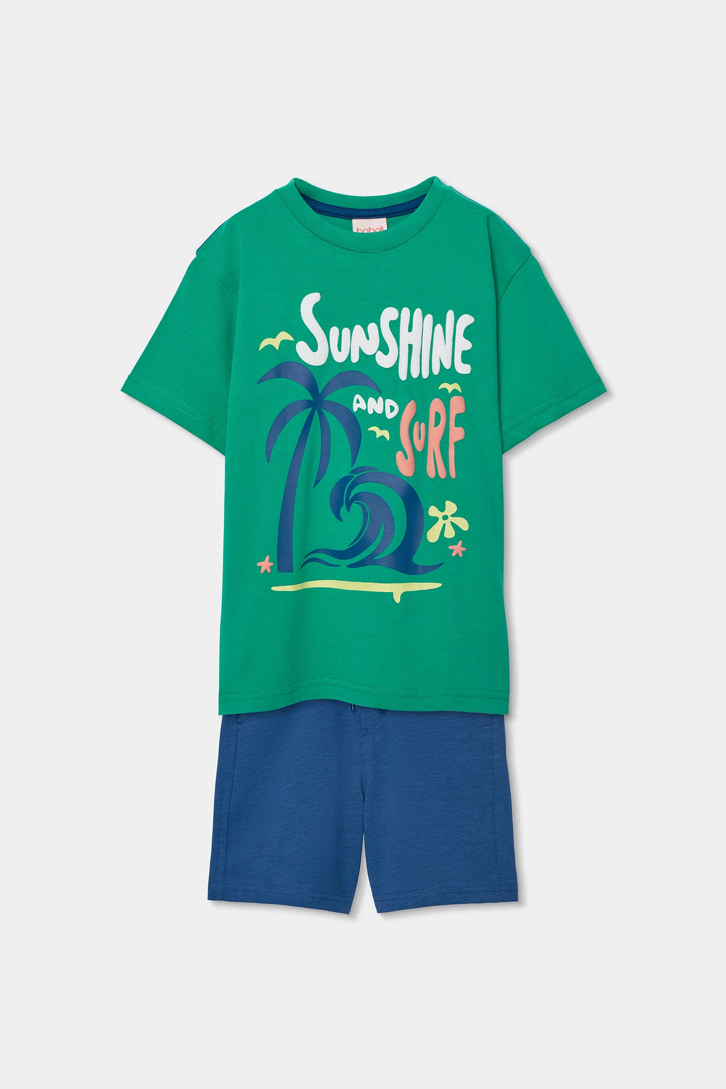 Ensemble de t-shirt bleu pour garçon parfait pour l'été. Conçu en coton, il offre fraîcheur et confort. Le t-shirt présente un design avec des palmiers et des vagues, ajoutant une touche amusante et estivale. Disponible en tailles de 2 ans à 14 ans, cet ensemble est idéal pour les journées de jeu et de plaisir. Les manches courtes facilitent la mobilité, et la couleur vibrante le rend facile à assortir avec d'autres styles décontractés pour un look détendu et confortable.