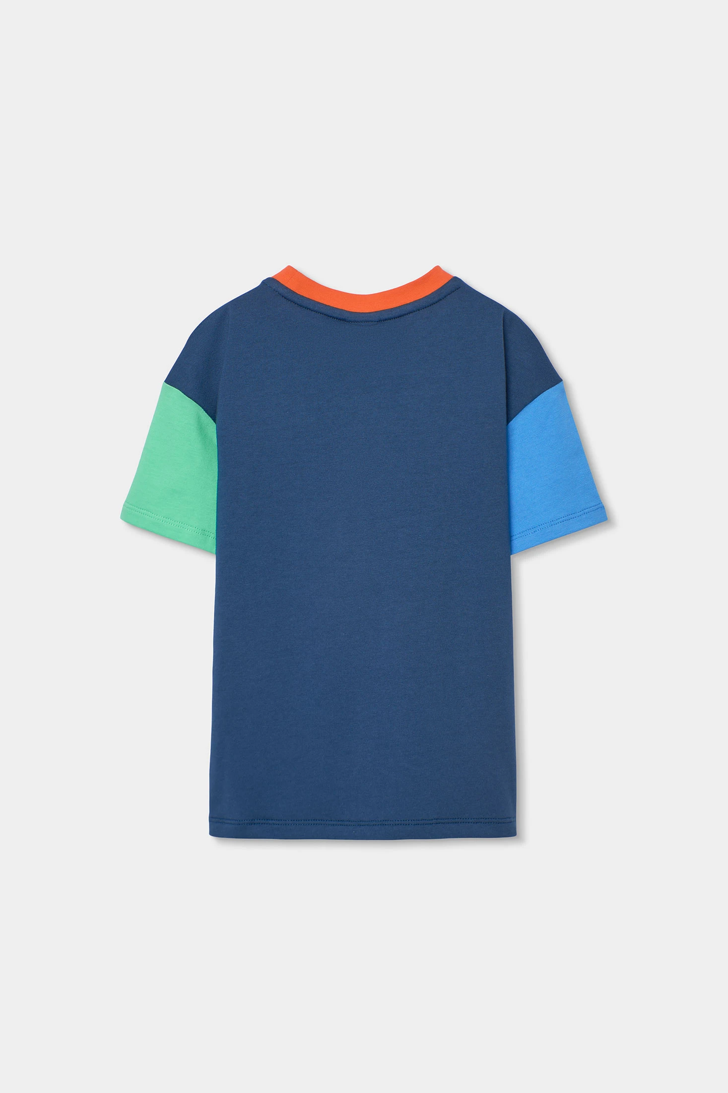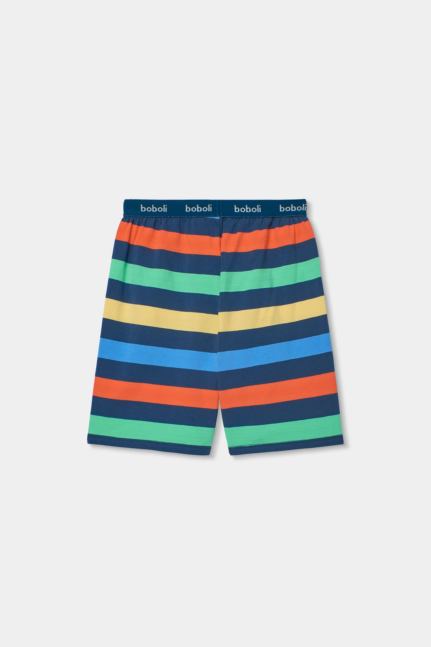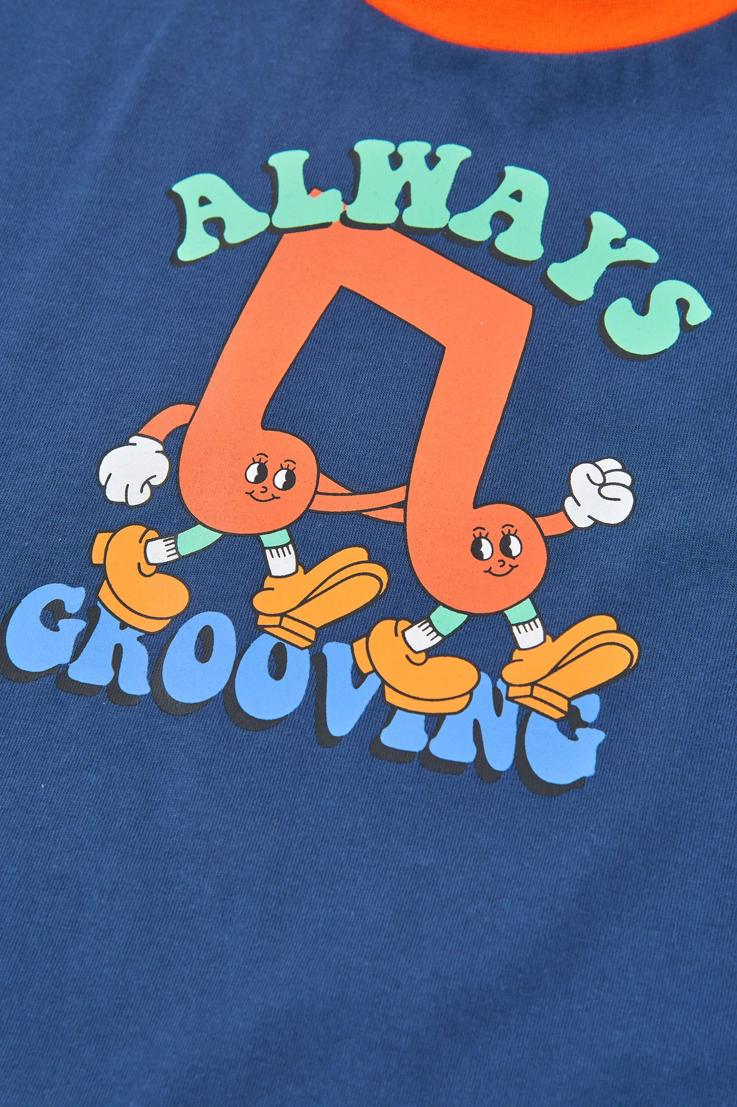 Pyjama bleu pour garçon confectionné en doux coton, garantissant confort tout au long de la nuit. Présente un design amusant avec des notes de musique et du texte, ainsi que des manches de différentes couleurs. La partie inférieure est à rayures multicolores, ajoutant une touche joyeuse. Disponible en tailles de 2 à 14 ans, offrant un ajustement approprié à mesure que l'enfant grandit. Parfait pour offrir style et confort à l'heure du coucher.