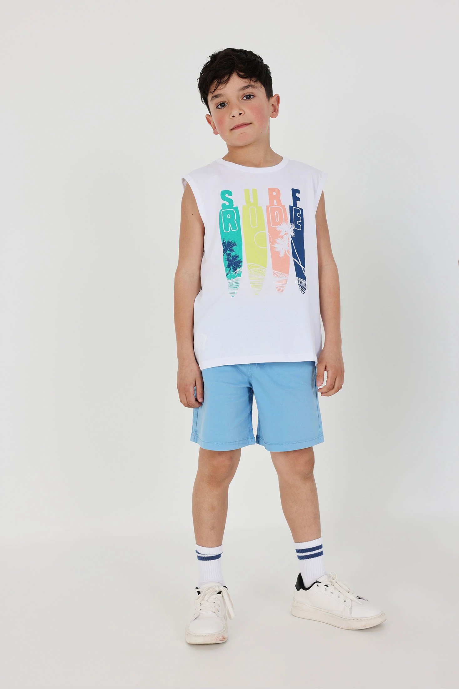 Bermudas en gabardine élastique de couleur bleue pour enfants, parfaites pour l'été, elles offrent un tissu léger qui permet une ventilation optimale, idéal pour jouer en plein air. Le design inclut une taille élastique avec cordon réglable, offrant confort et facilité d'habillage. Disponibles en tailles allant de 12 mois à 14 ans, elles s'adaptent aux différentes étapes de croissance. Leur couleur bleue brillante permet de les assortir avec des t-shirts de tons neutres ou des imprimés vibrants pour un style frais et moderne. Adaptées à diverses occasions, elles sont une option polyvalente et fonctionnelle.