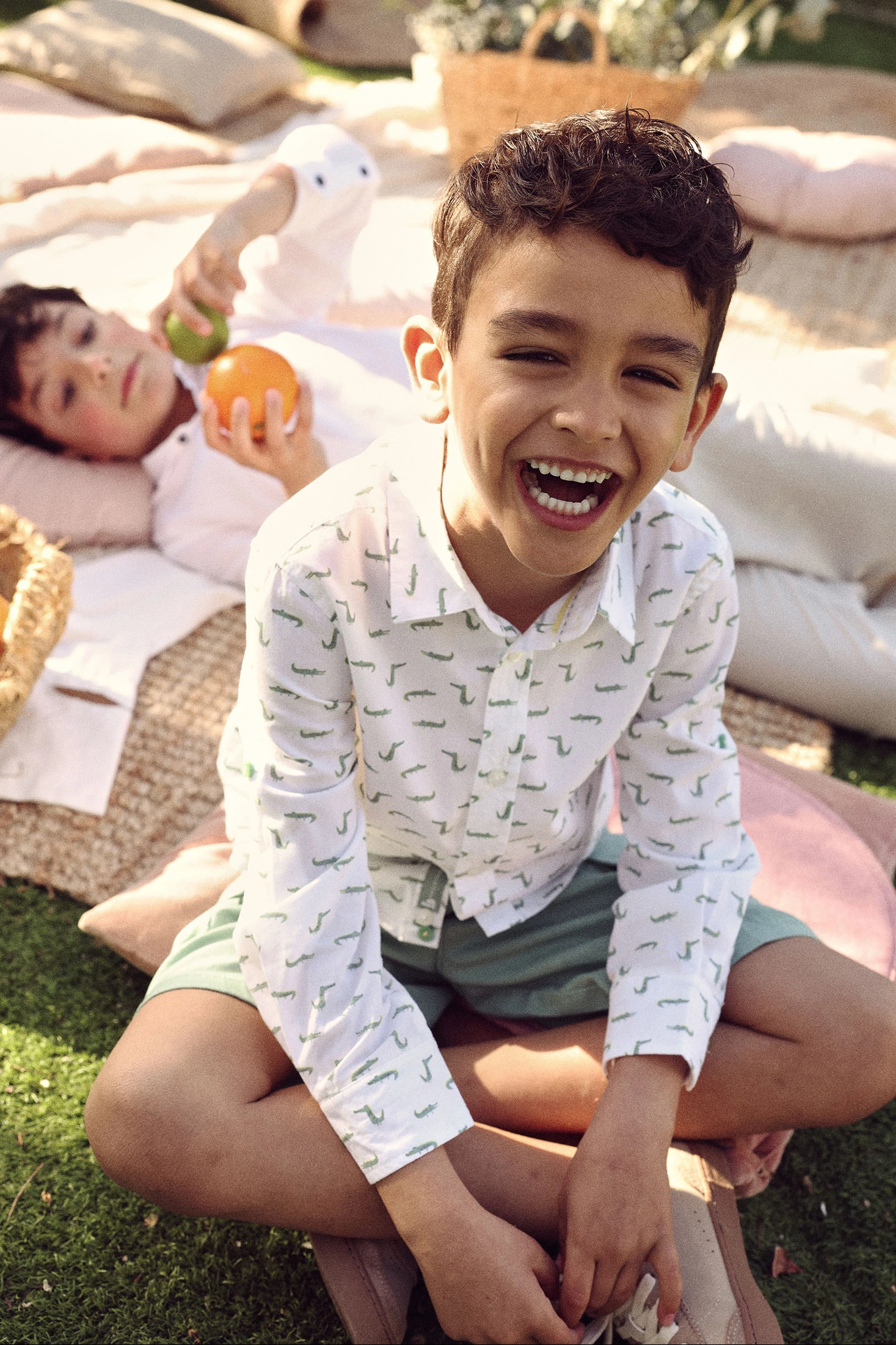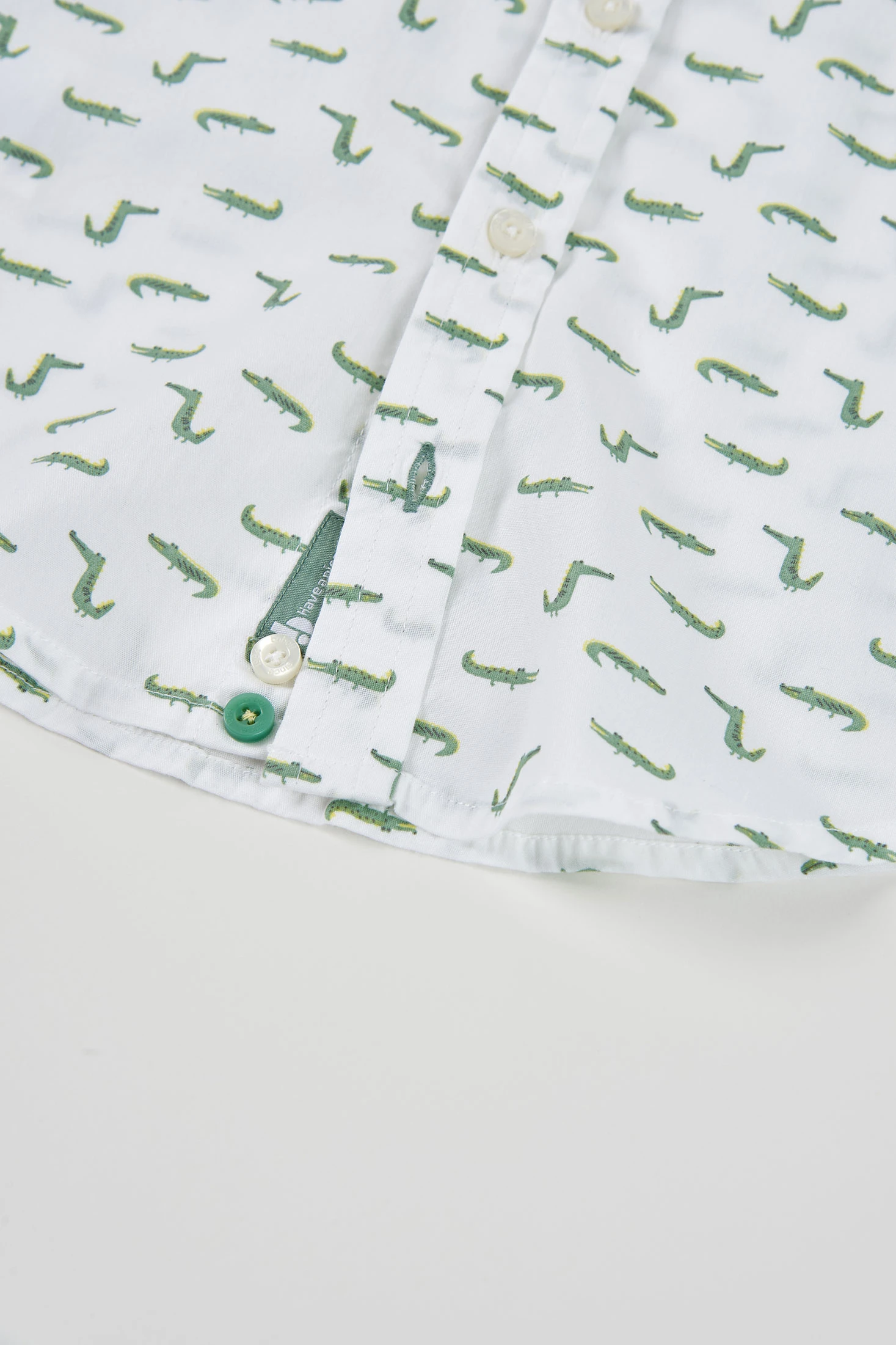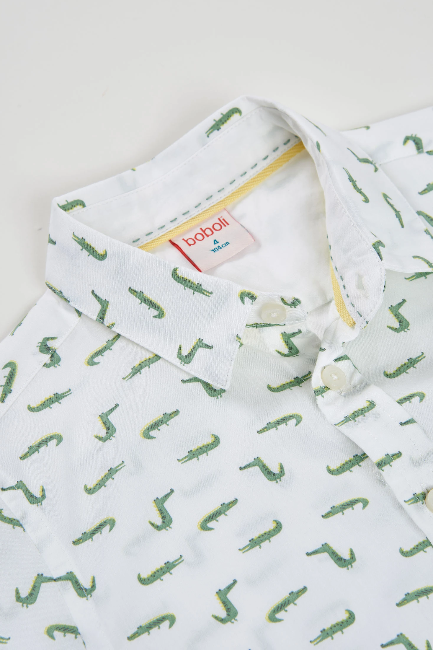 Chemise en popeline pour garçon, parfaite pour toutes les occasions. Fabriquée dans un matériau doux et léger, elle présente un motif amusant de petits animaux en vert sur fond blanc. Le design comprend un col classique et des manches longues, idéales pour un look élégant et confortable. Disponible en tailles allant de 12 mois à 10 ans, cette chemise se marie bien avec des pantalons décontractés ou formels pour un style polyvalent. C'est un vêtement indispensable pour la garde-robe de tout garçon stylé.