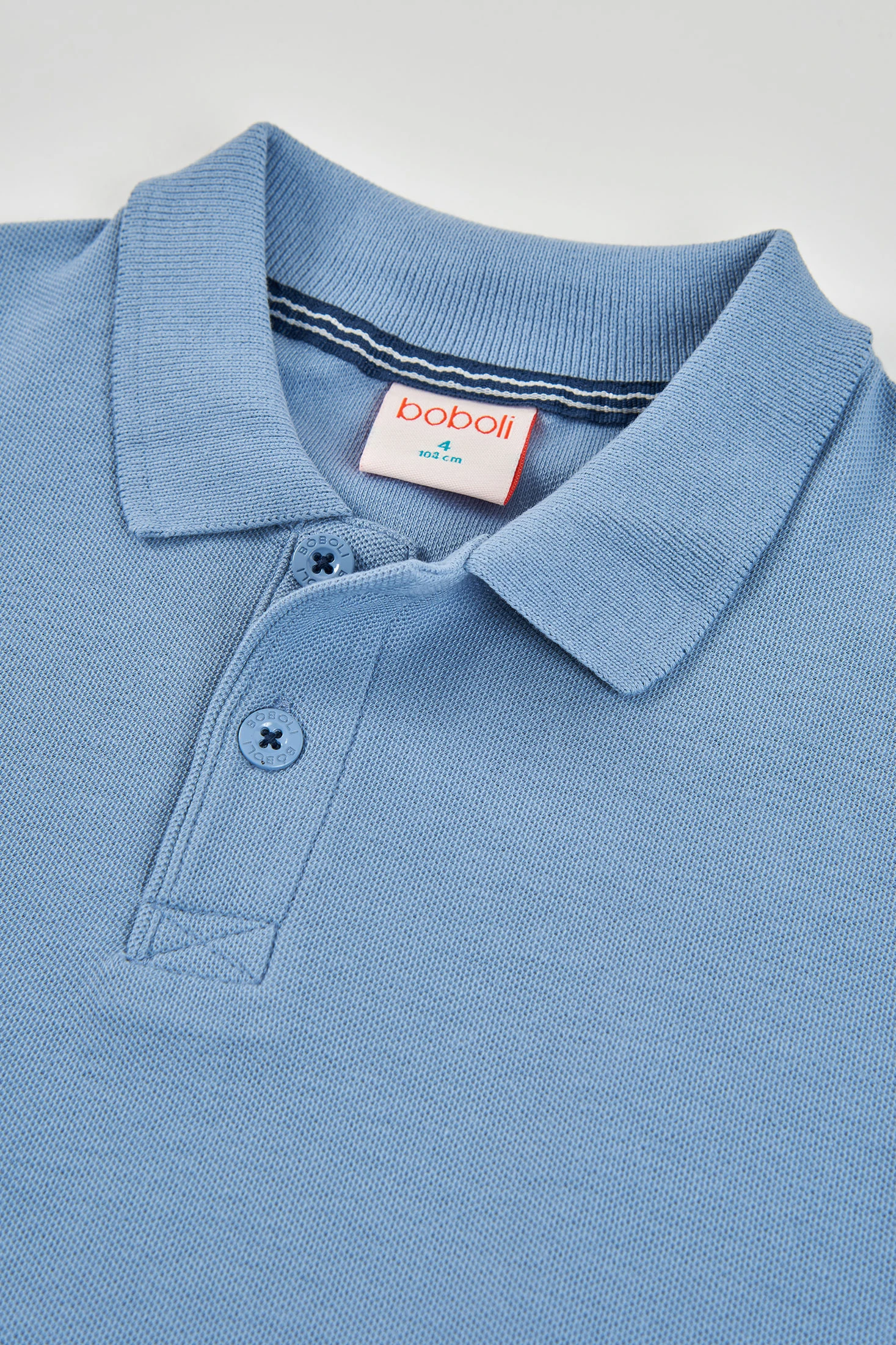 Polo pour enfant confectionné en coton bleu, un matériau doux et confortable, idéal pour la peau sensible des petits. Le design classique comprend un col type polo et des boutons sur le devant, ce qui facilite son enfilage. Parfait pour les âges de 2 à 14 ans, il est polyvalent pour des occasions décontractées ou un peu plus formelles. Sa couleur bleue facilite les combinaisons avec différents styles et vêtements. Un détail discret à l'avant en bas ajoute une touche d'intérêt sans être accaparant, en faisant une option élégante pour toute garde-robe.