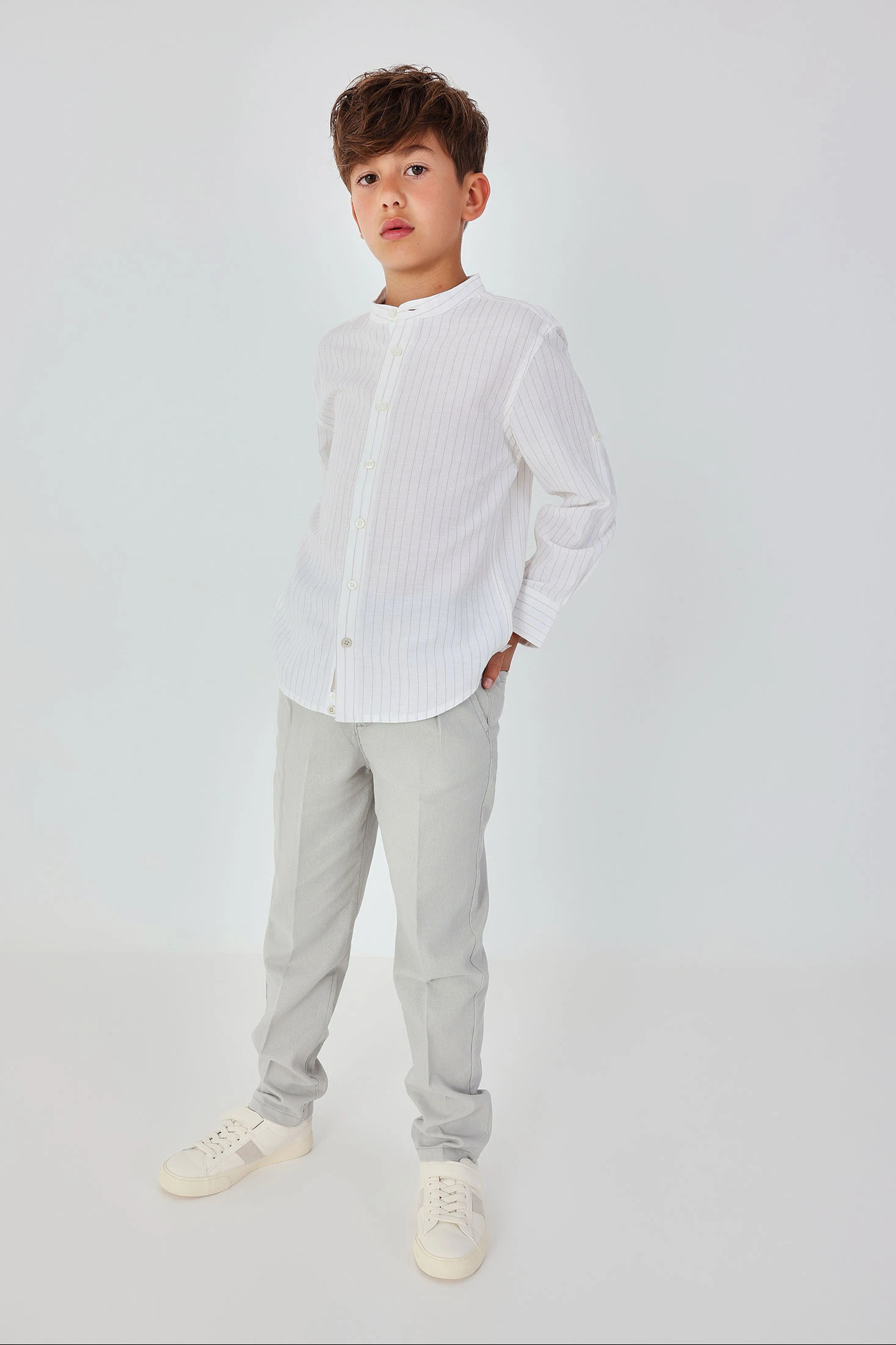 Pantalon en lin beige pour garçon, idéal pour un look élégant et confortable. Son design simple et classique le rend parfait pour diverses occasions. Confectionné en lin, il offre fraîcheur et légèreté, ce qui le rend idéal pour les climats chauds. Il présente un ajustement confortable avec fermeture à bouton et à glissière. Disponible en tailles allant de 12 mois à 14 ans, il s'adapte parfaitement aux enfants en pleine croissance. Sa couleur beige neutre permet des combinaisons polyvalentes avec des chemises ou des polos de différentes nuances. C'est un vêtement basique dans la garde-robe qui apporte style et confort.