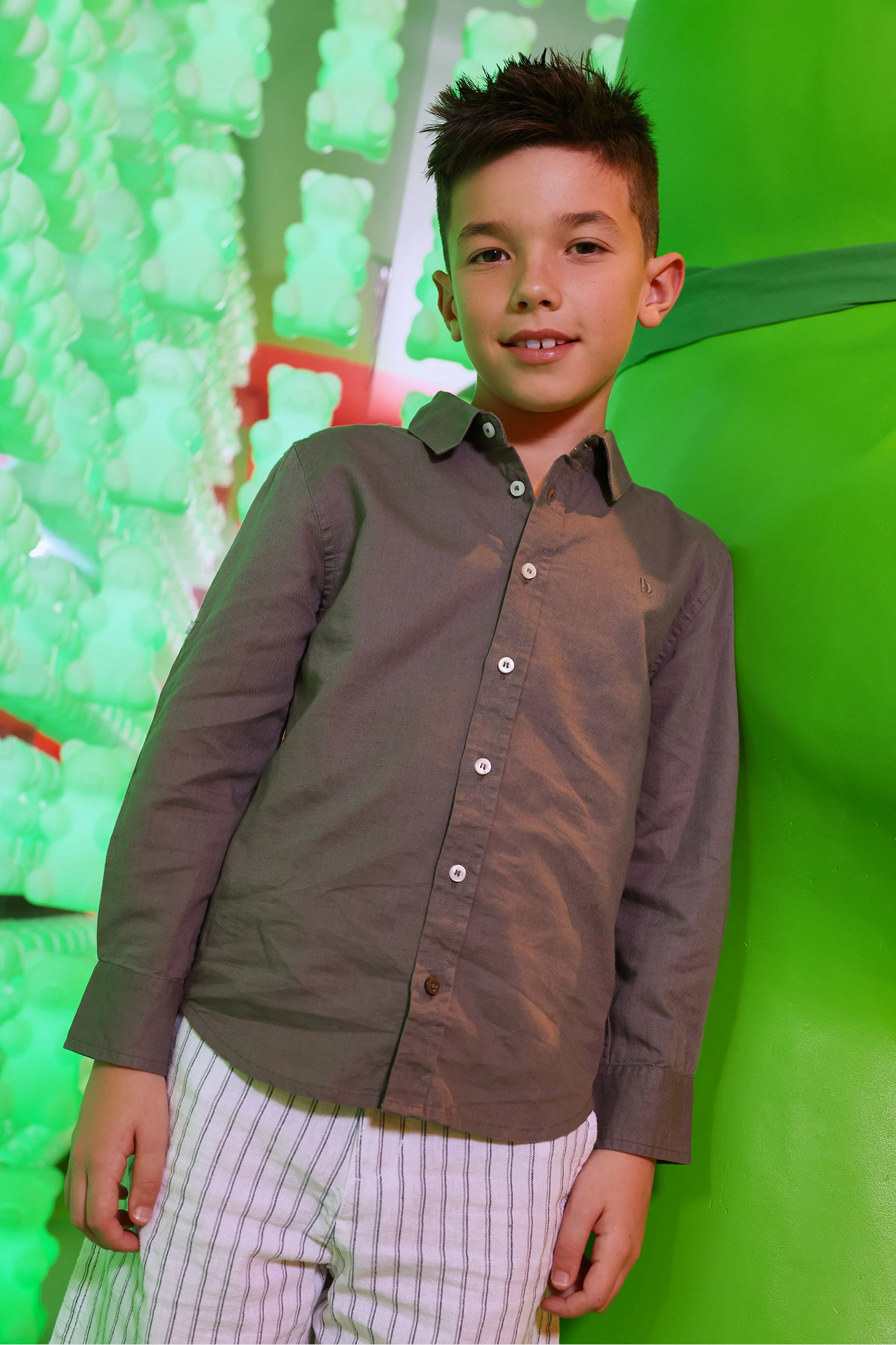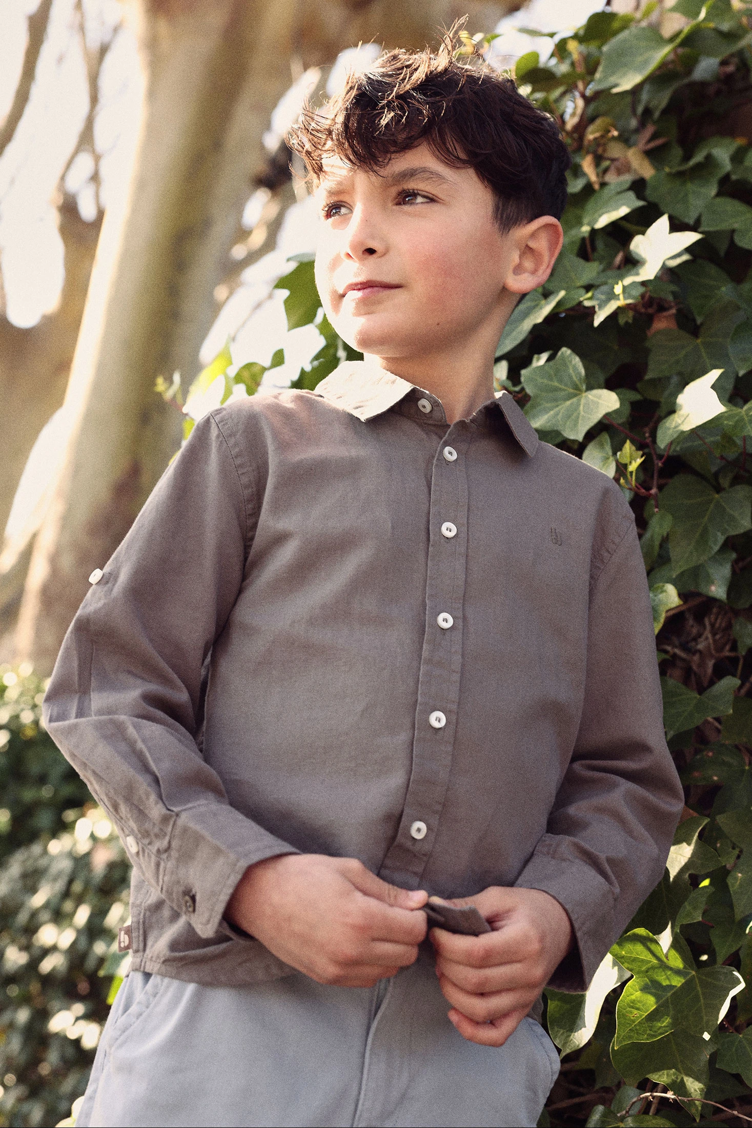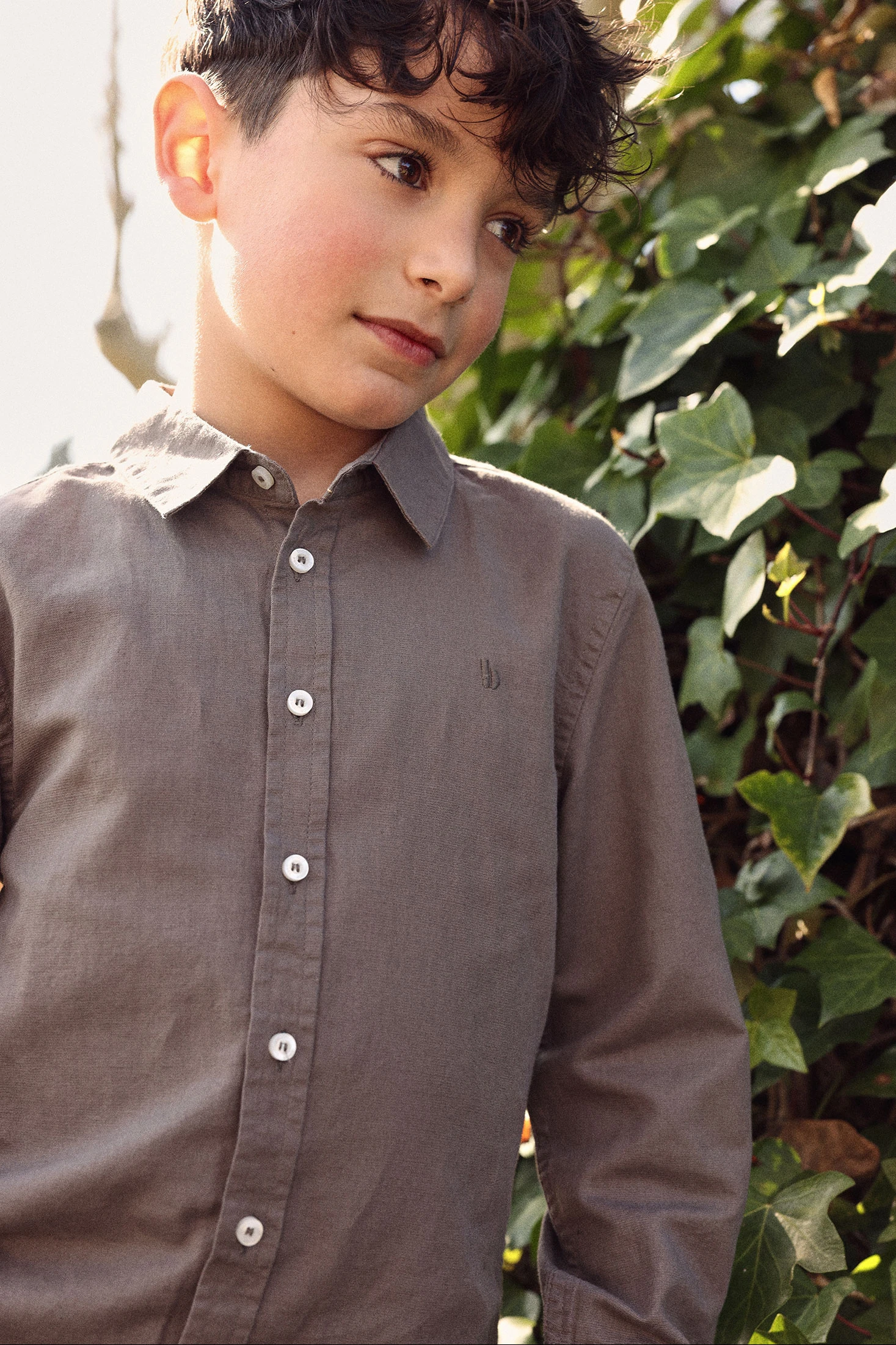 Chemise enfant lin marron