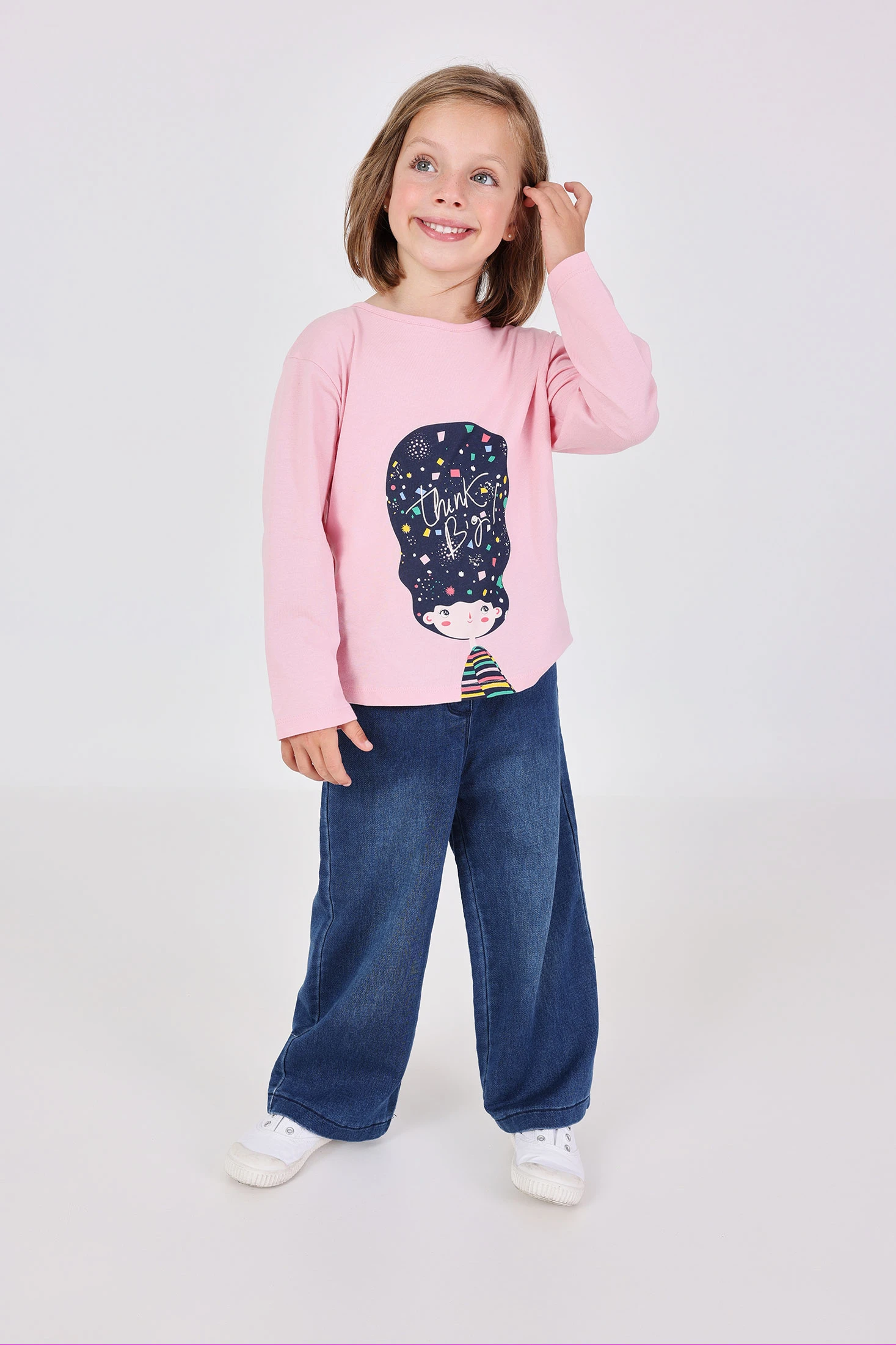 Jean bleu pour fille, conçu pour offrir confort et polyvalence tout au long de l'année. Fabriqué avec un tissu doux et extensible, il permet une liberté de mouvement, idéal pour le jeu et les activités quotidiennes. Disponible en tailles de 12 mois à 10 ans, il garantit un ajustement parfait à la silhouette de votre fille. La couleur bleue classique facilite sa combinaison avec des t-shirts colorés ou des pulls imprimés, offrant un look charmant et fonctionnel pour toute occasion.
