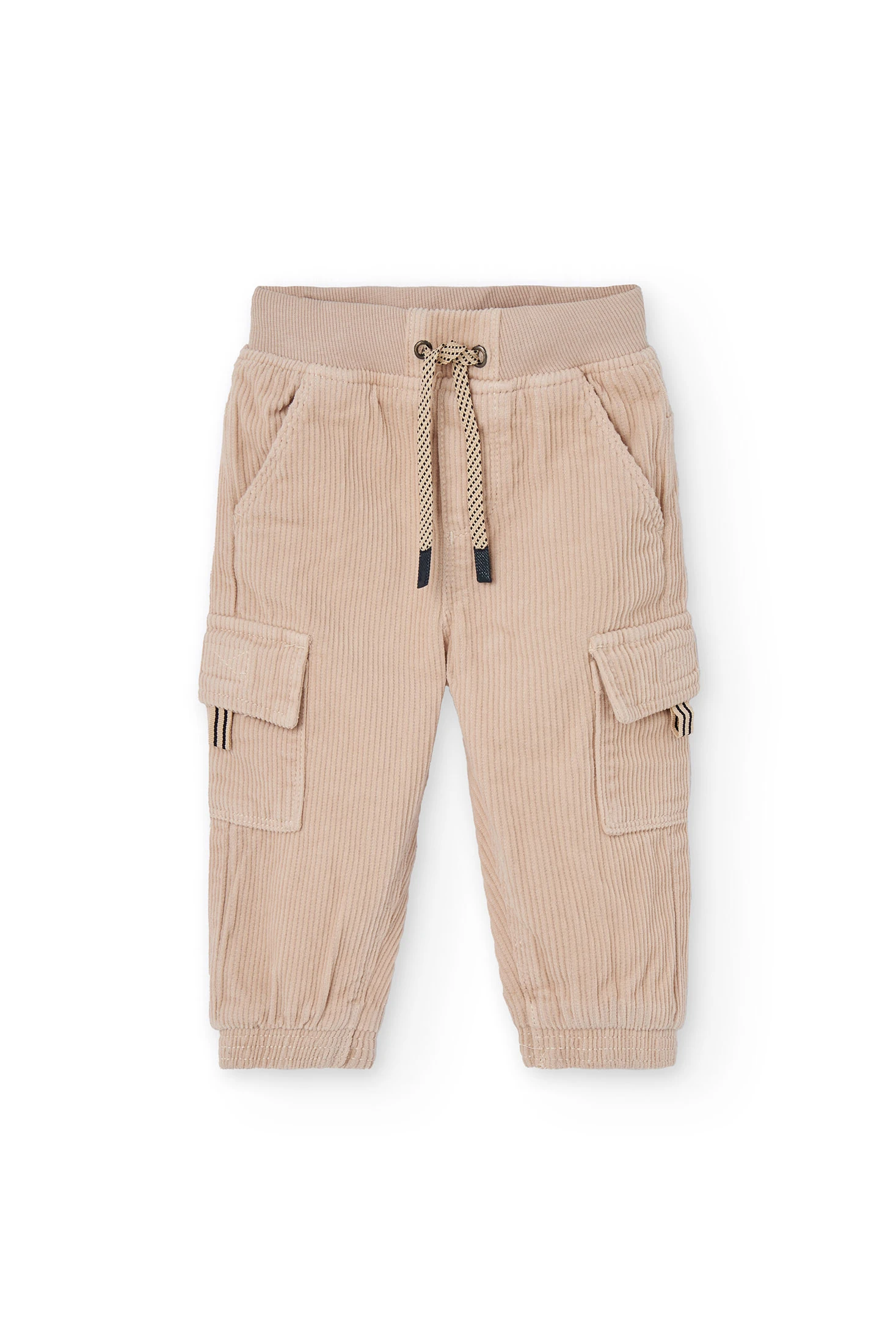 Pantalon cargo enfant en velours côtelé beige